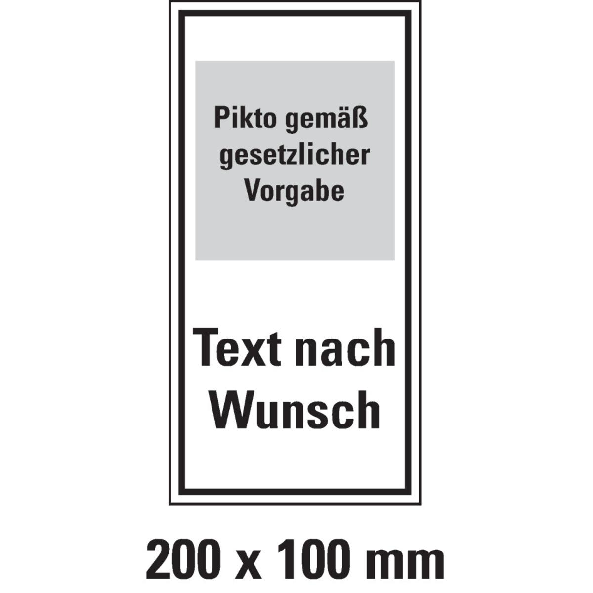 Auswahl: Hinweisschild, 1 Pikto ASR/DIN/ISO oben/Text nach Wunsch. unten, Kunststoff, 200x100mm