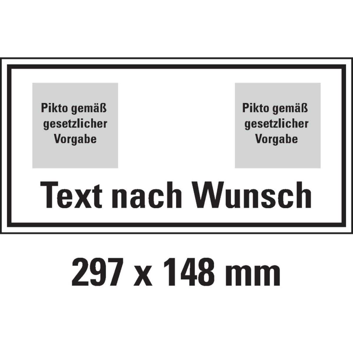 Auswahl: Hinweisschild, 2 Piktos ASR/DIN/ISO oben/Text nach Wunsch. unten, Kunststoff, 297x148mm