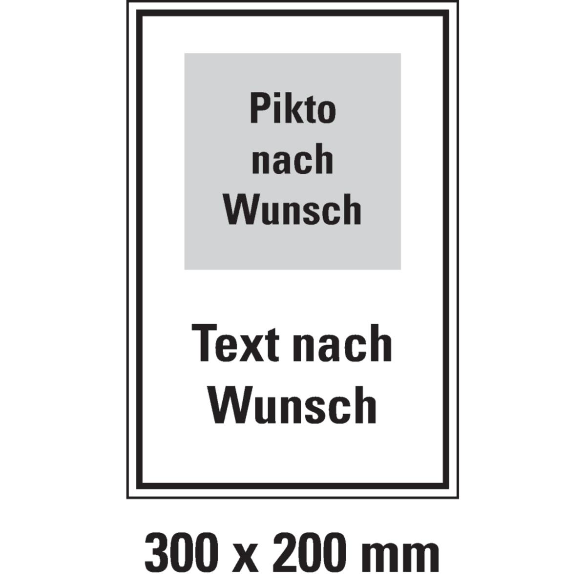 Auswahl: Hinweisschild, 1 Pikto ASR/DIN/ISO oben/Text nach Wunsch. unten, Magnetfolie, 300x200mm