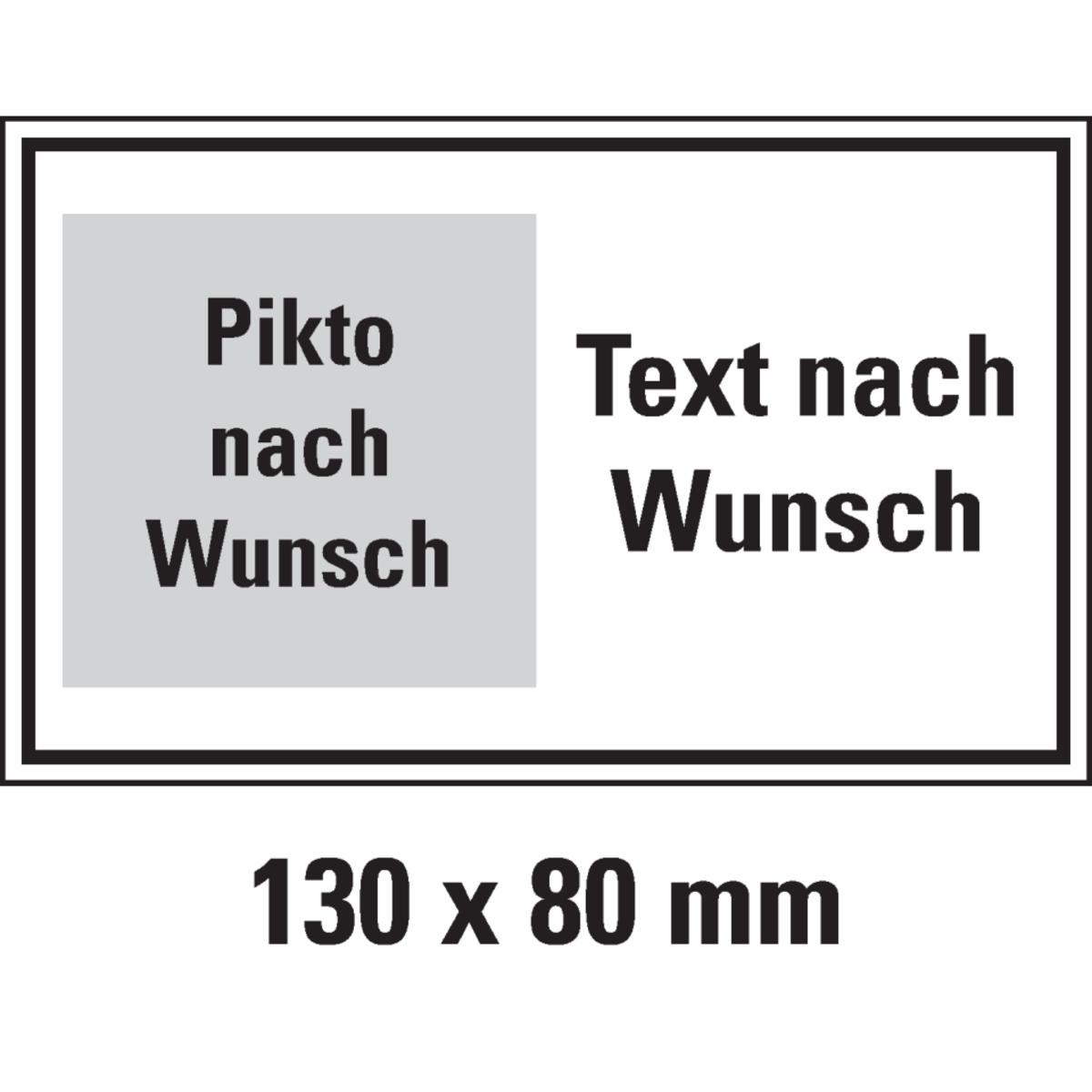 Auswahl: Hinweisschild, 1 Pikto ASR/DIN/ISO links/Text nach Wunsch. rechts, Folie, 130x80mm