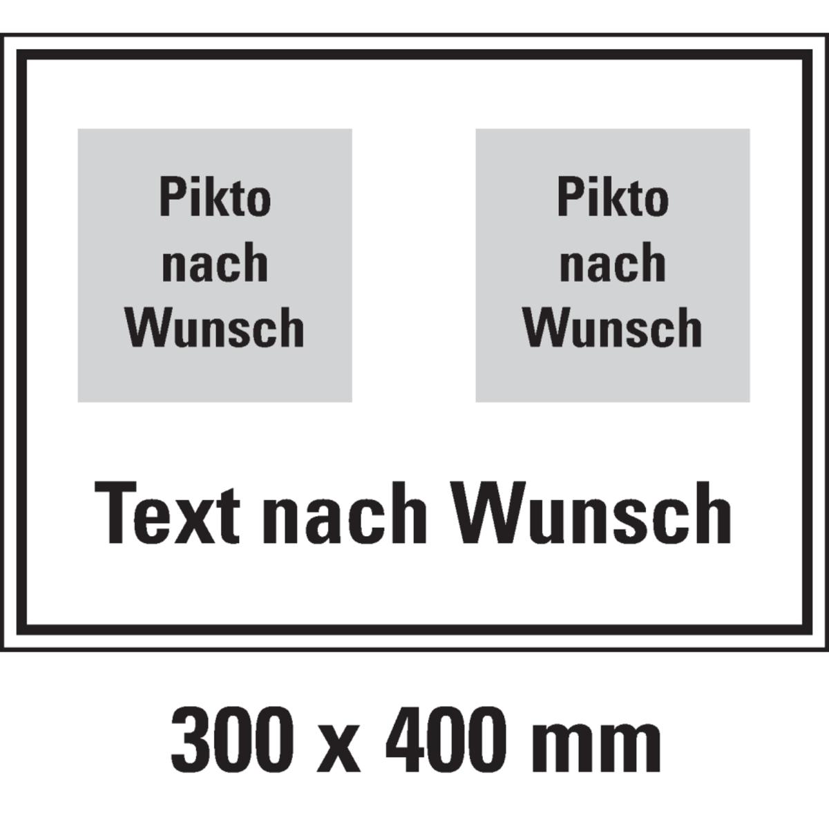 Auswahl: Hinweisschild, 2 Piktos ASR/DIN/ISO oben/Text nach Wunsch. unten, Folie, 300x400mm