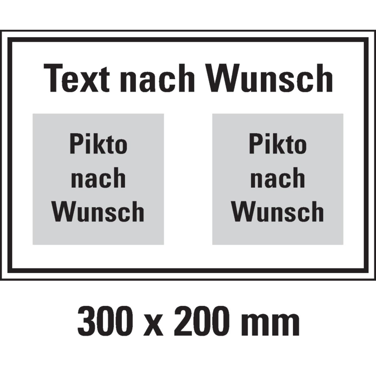 Auswahl: Hinweisschild, 2 Piktos ASR/DIN/ISO unten/Text nach Wunsch. oben, Folie, 300x200mm