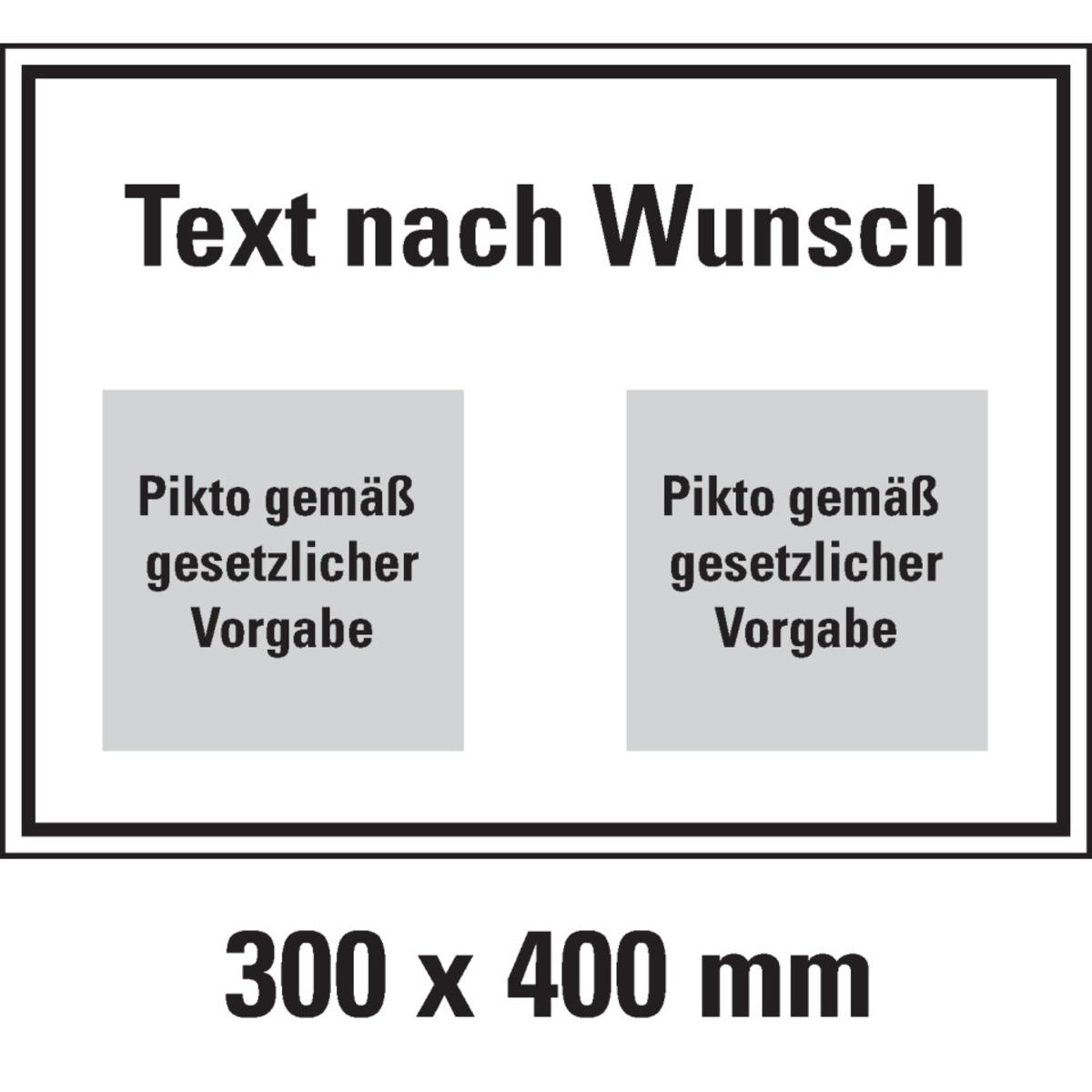 Auswahl: Hinweisschild, 2 Piktos ASR/DIN/ISO unten/Text nach Wunsch. oben, Folie, 300x400mm