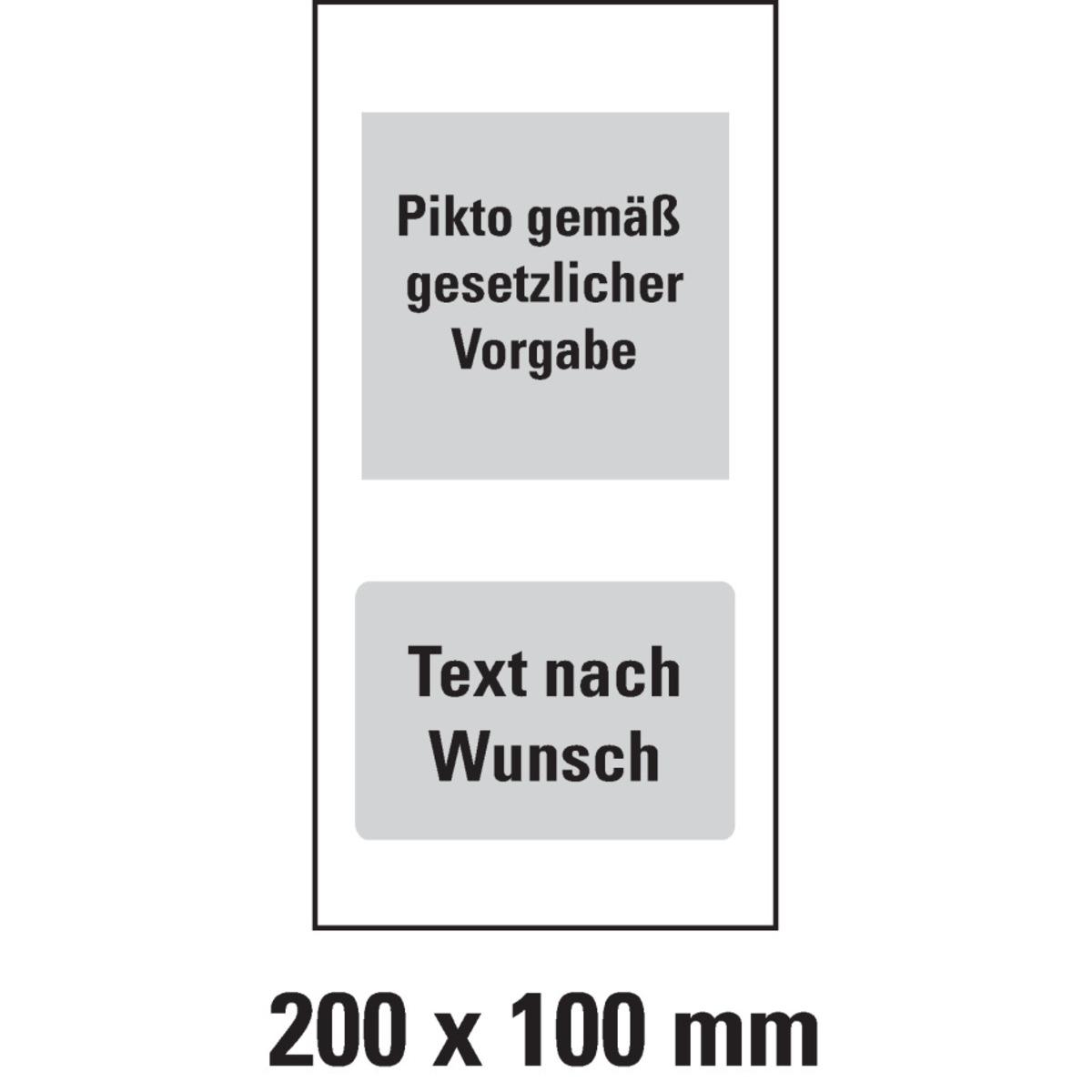 Auswahl: Hinweisschild, 1 Pikto ASR/DIN/ISO oben/Textfeld farbig unten, Folie, 200x100mm