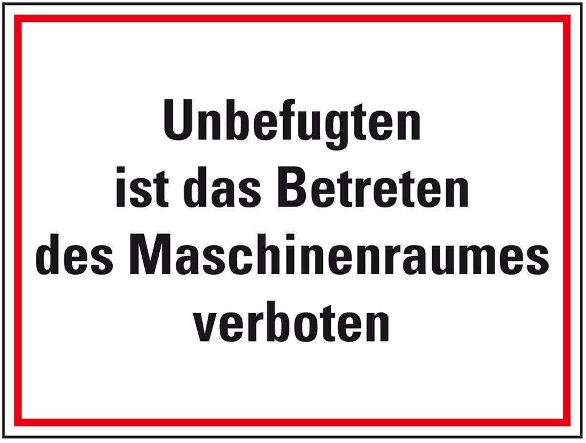 Das Hinweisschild "Betreten des Maschinenraumes verboten" vermittelt dem Betrachter Informationen für mehr Sicherheit.