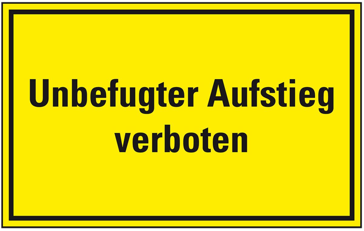 Das Hinweisschild "Unbefugter Aufstieg verboten" vermittelt dem Betrachter Informationen für mehr Sicherheit.