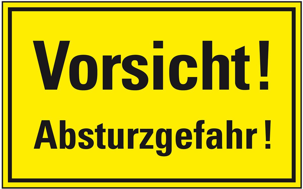 Hinweisschild "Vorsicht! Absturzgefahr!" zur Warnung vor Gefahren.