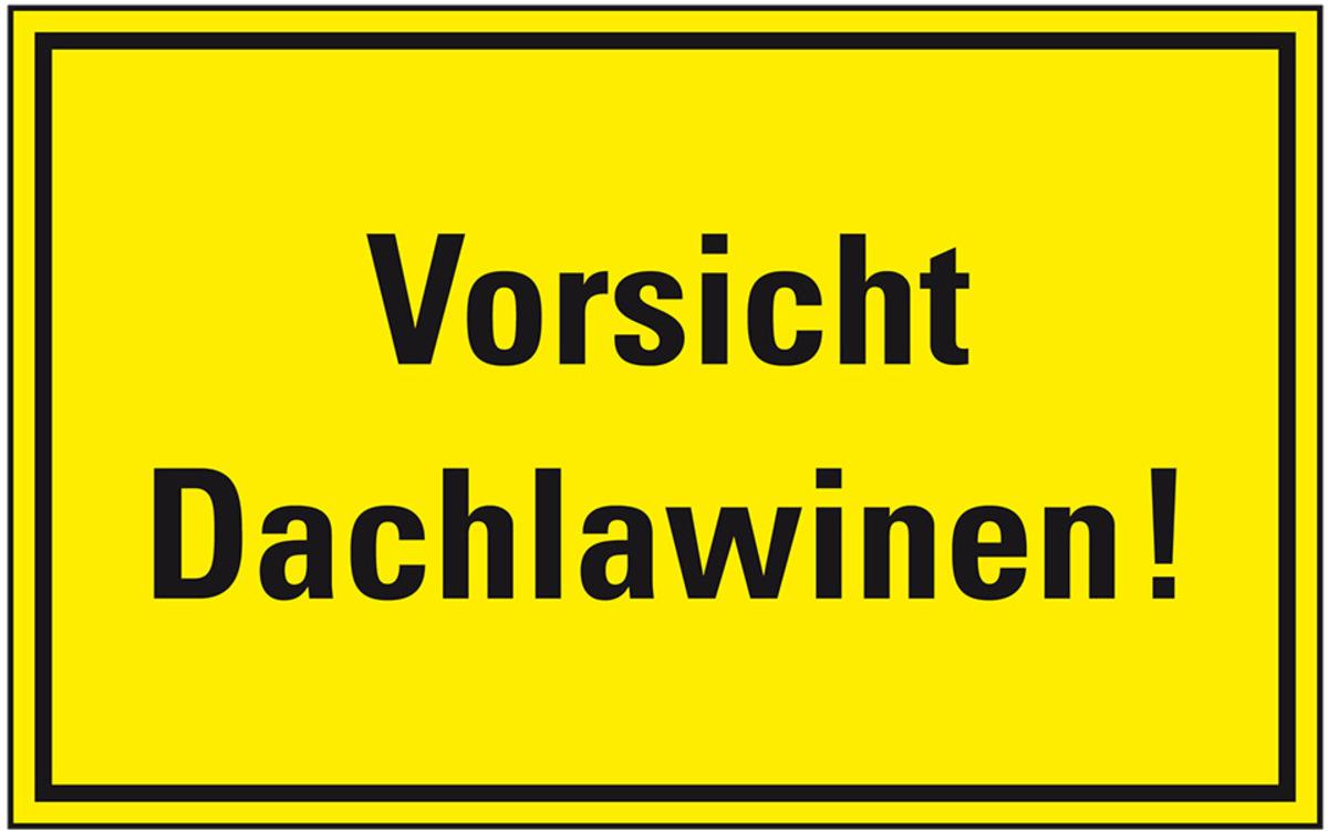 Mit dem Hinweisschild "Vorsicht Dachlawinen!" weisen sie auf die im Kennzeichnungsbereich liegende Gefahr hin zum Schutz von Mitarbeitern, Besuchern und/oder Passanten.