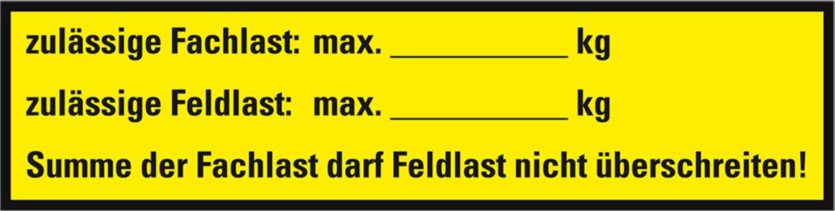 Auswahl: Hinweisschild Zulässige Fach- und Feldlast..., Folie, selbstklebend, 200x35mm
