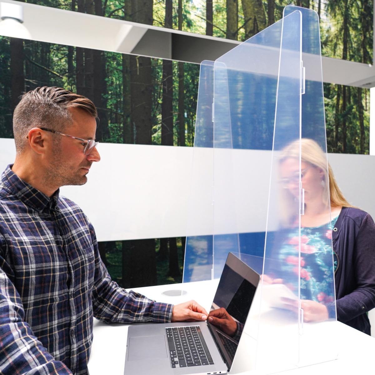 Auswahl: Infektionsschutzscheibe, Standfüße außen, Milchglasoptik, Kunststoff, ca. 500x900mm