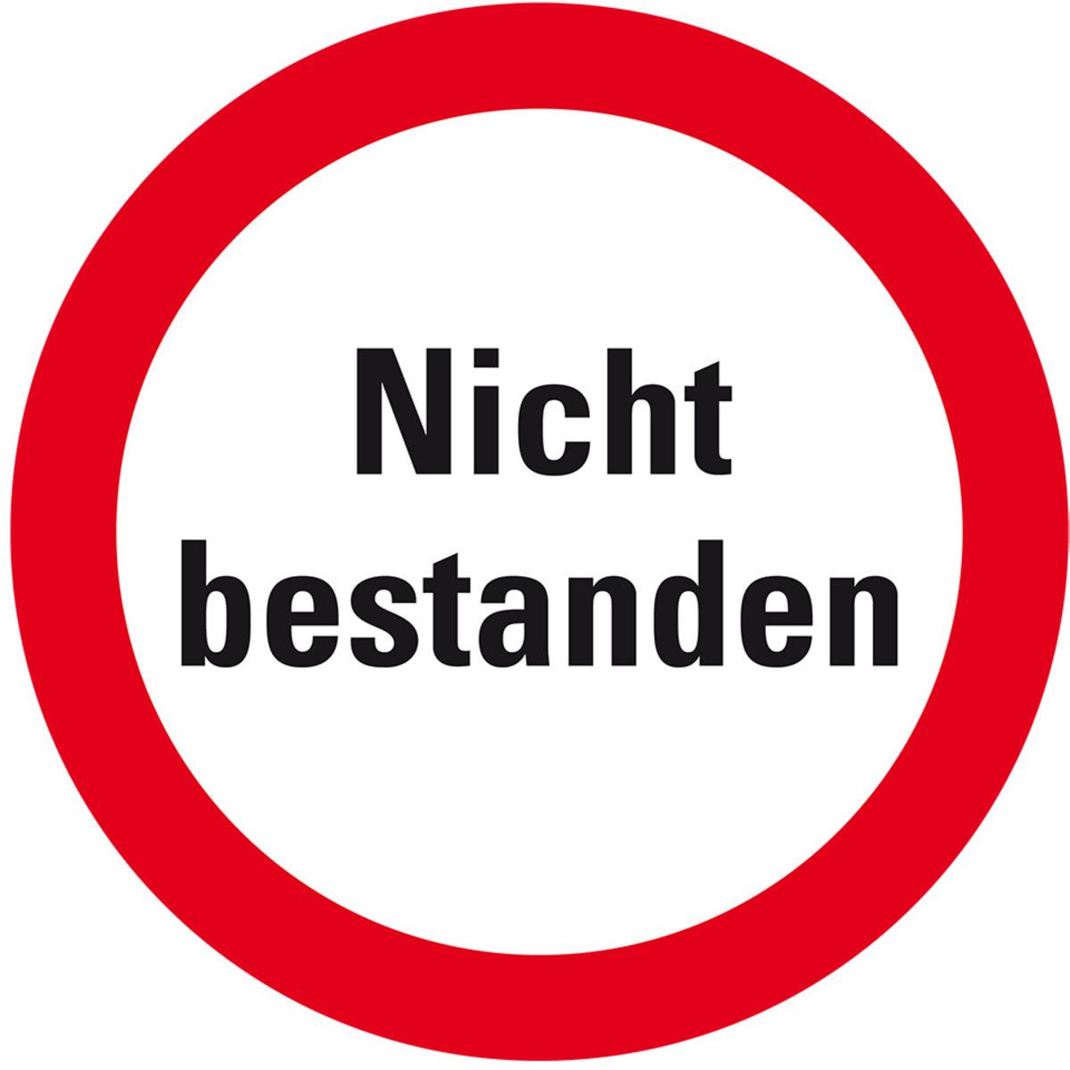 Auswahl: Infoplakette Nicht bestanden, Dokumentenfolie, selbstklebend, Ø 30mm, 18/Bogen