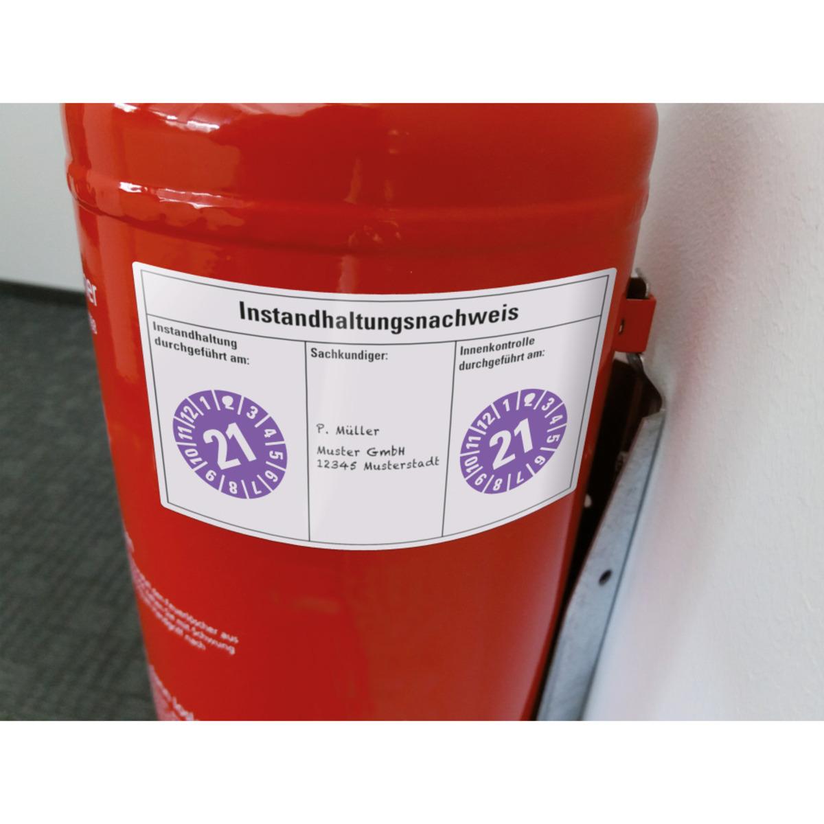 Selbstklebender Instandhaltungsnachweis zur Dokumentation und Instandhaltung von Feuerlöschern.