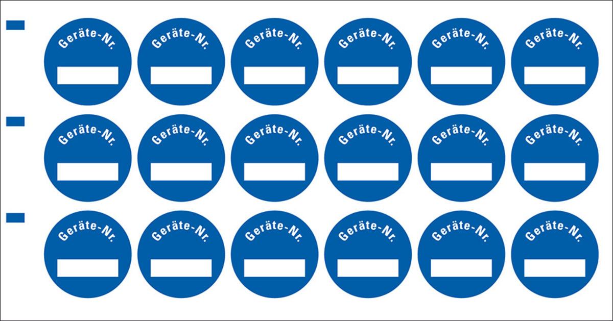 Auswahl: Inventaretikett Geräte-Nr., blau, Dokumentenfolie, selbstklebend, Ø 30mm, 18/Bogen