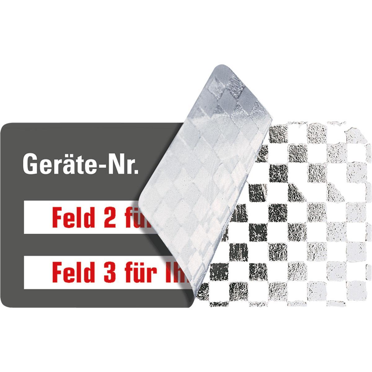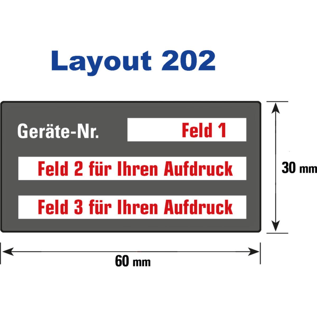 Auswahl: Inventaretikett Geräte-Nr., 3 Felder Text nach Wunsch, Schachbrettfolie, 60x30mm, 9/Bogen