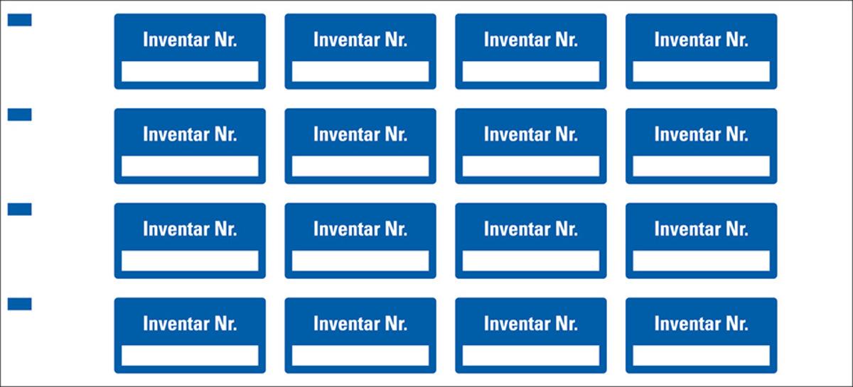 Auswahl: Inventaretikett Inventar Nr., einzeilig, blau, Dokumentenfolie, 40x20mm, 16/Bogen