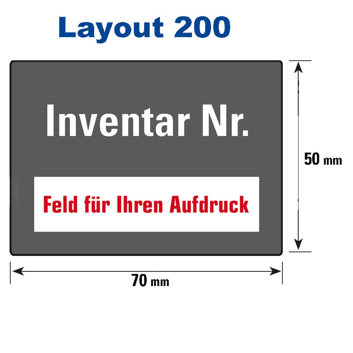 Auswahl: Inventaretikett Inventar-Nr., 1 Feld Text nach Wunsch, Dokumentenfolie, Spezial, 70x50mm, 3/Bogen