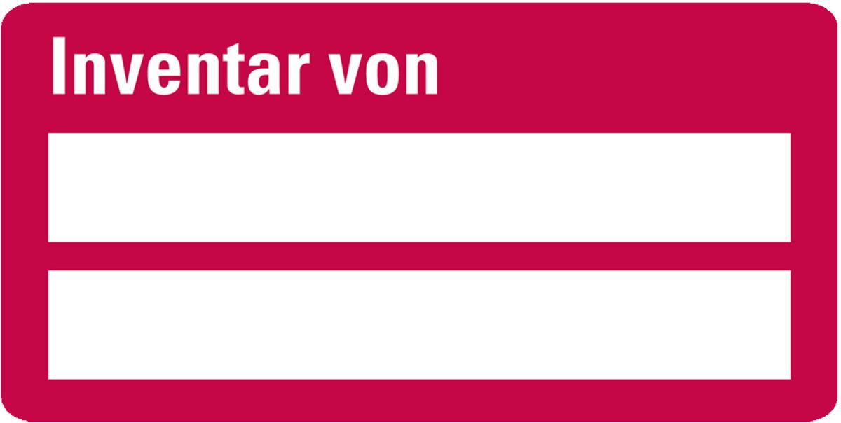 Auswahl: Inventaretikett Inventar von, zweizeilig, rot, Dokumentenfolie, 60x30mm, 9/Bogen