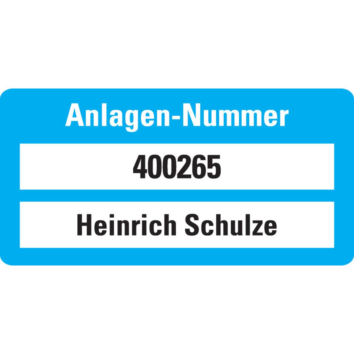 Auswahl: Inventaretikett nach Wunsch, 2 Felder Text nach Wunsch, Dokufolie, Spezial, 40x20mm, 16/Bogen