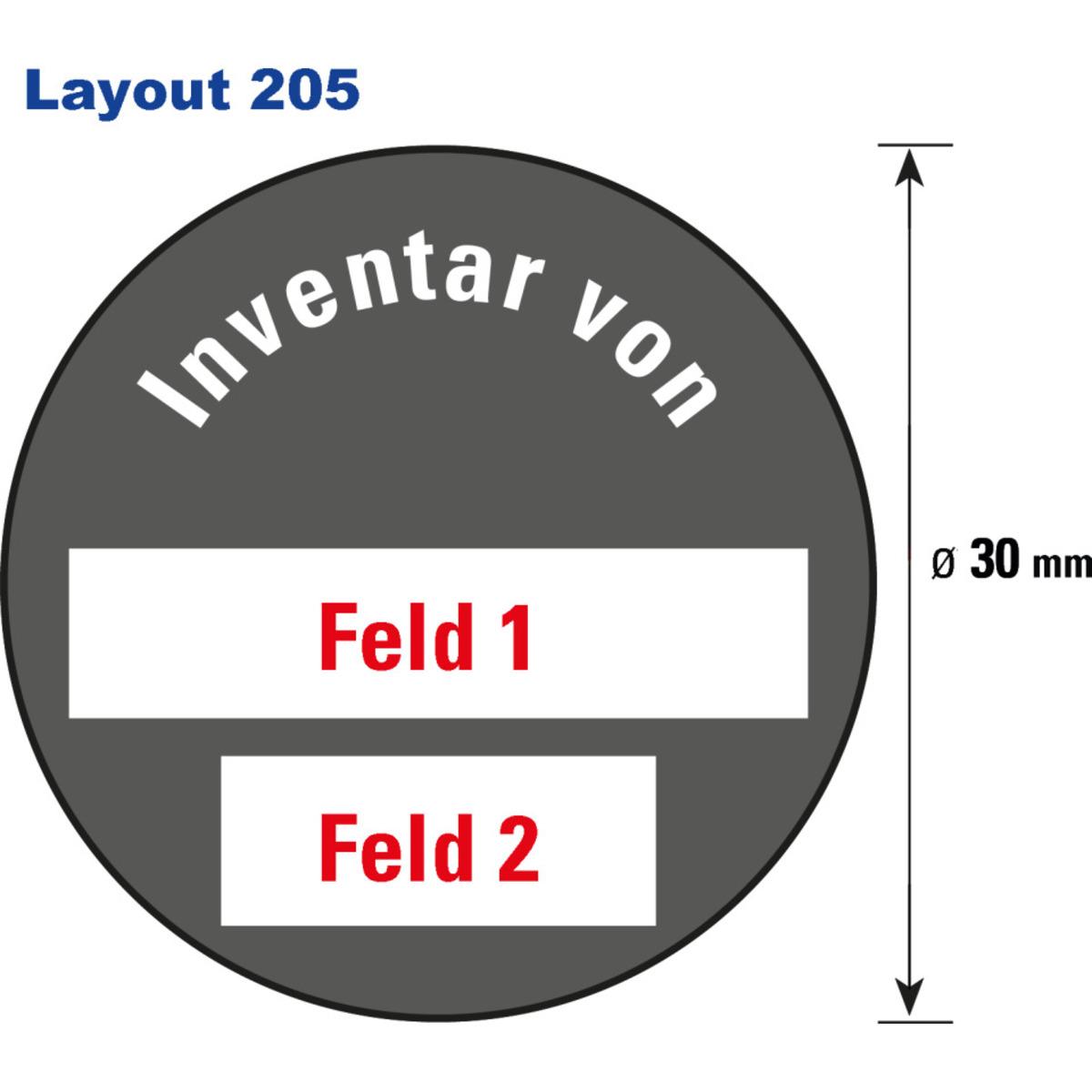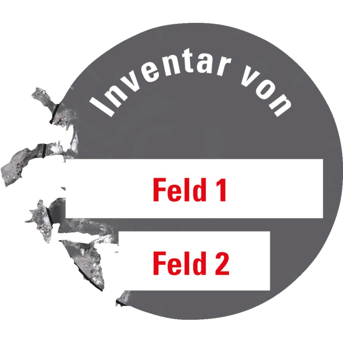 Auswahl: Inventaretikett Inventar von, 2 Felder Text nach Wunsch, Schachbrettfolie, Ø 30mm, 18/Bogen