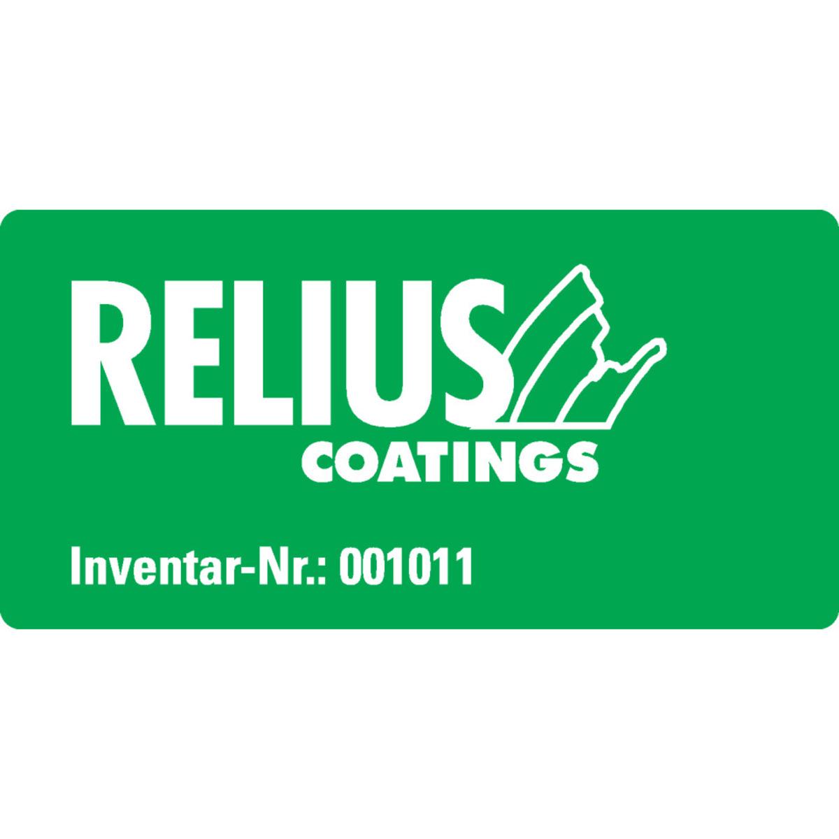 Selbstklebendes, eckiges Inventaretikett mit Logo und Text nach Wunsch.