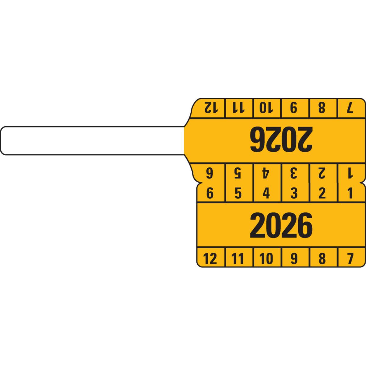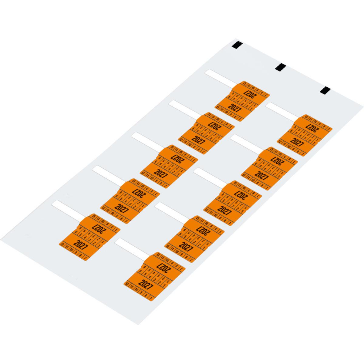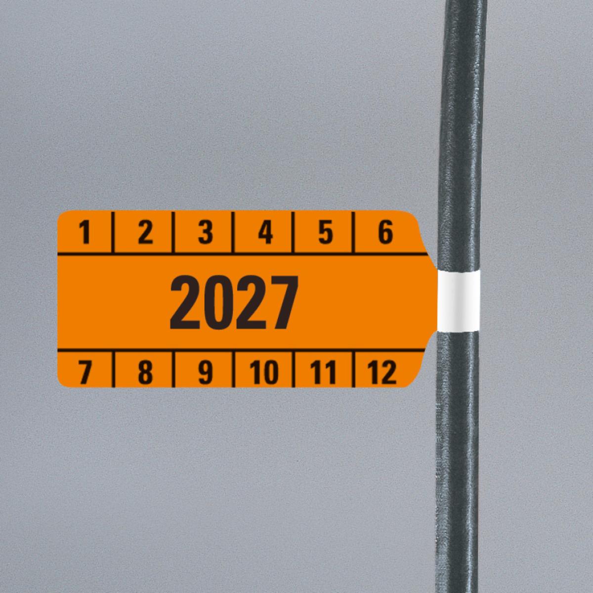 Auswahl: Kabelprüfplakette 2027, orange, Folie, selbstklebend, 65x30mm, 10/Bogen