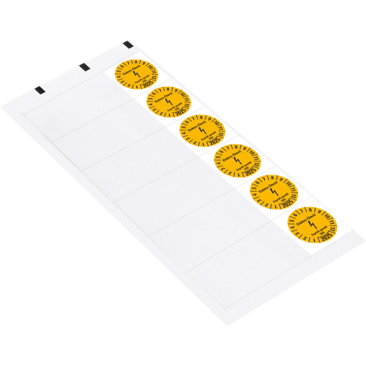 Auswahl: Kabelprüfplakette Elektro-Check Gepr.gem.VDE 2025, gelb, Folie, 57x25mm, 6/Bogen