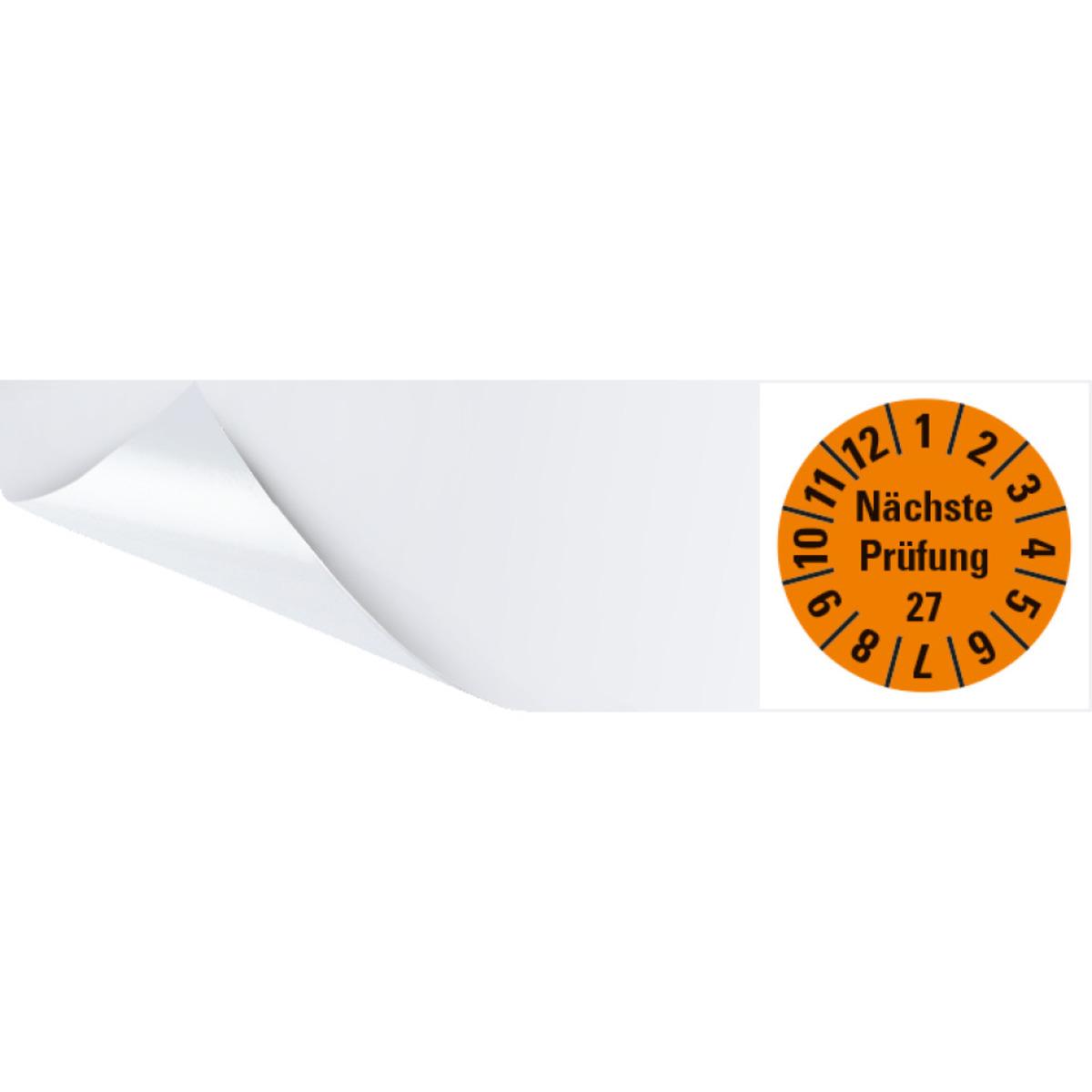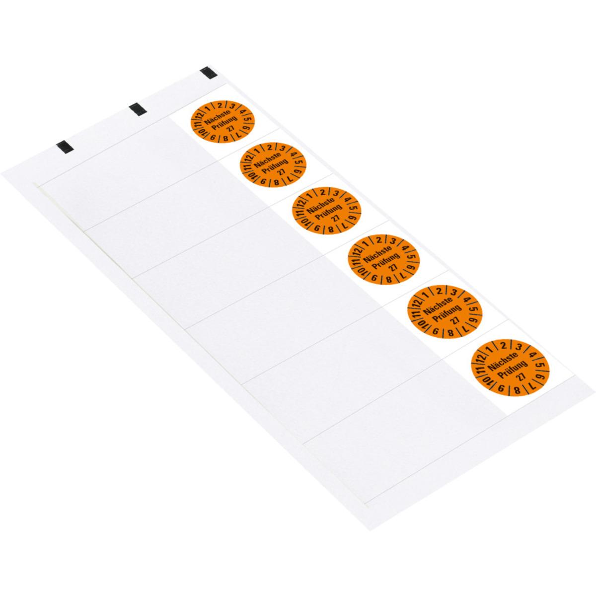 Auswahl: Kabelprüfplakette Nächste Prüfung 27, orange, Folie, selbstkl., 95x25mm, 6/Bogen