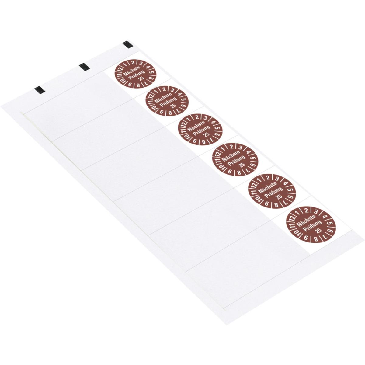Auswahl: Kabelprüfplakette Nächste Prüfung 25, braun, Folie, selbstkl., 95x25mm, 6/Bogen