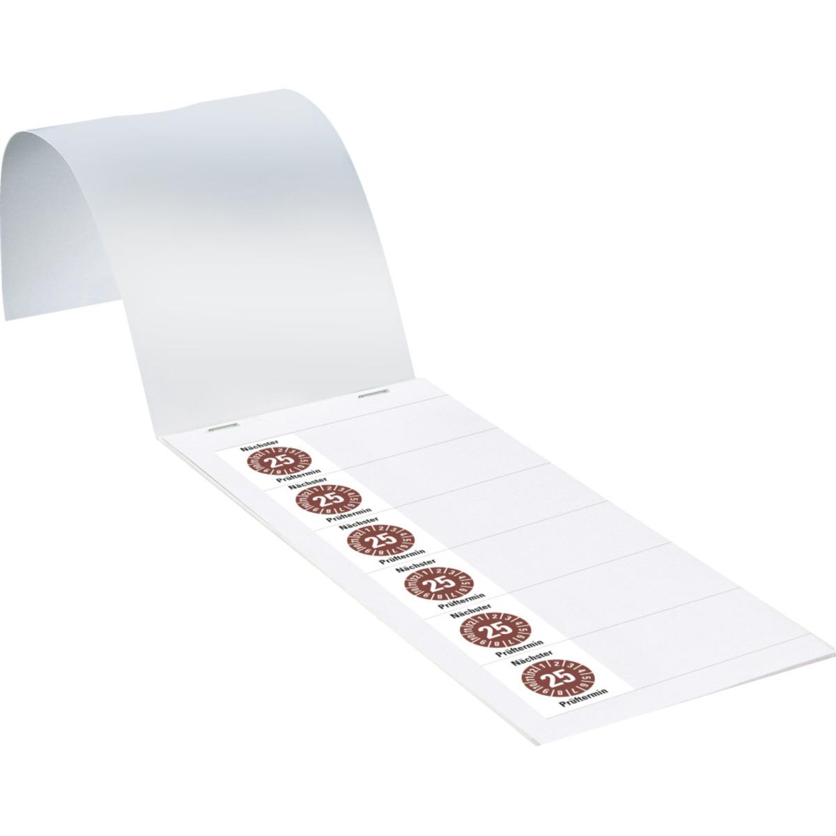 Auswahl: Kabelprüfplakette Nächst. Prüftermin 25, braun, Folie, selbstkl., 95x25mm, 60/Heft