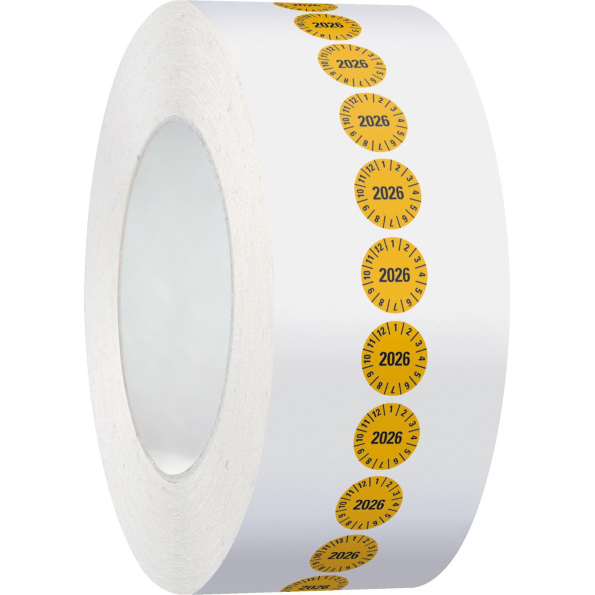 Auswahl: Jahresprüfplakette 2026, gelb, Folie, ablösbar, Ø 10mm, 1000/Rolle