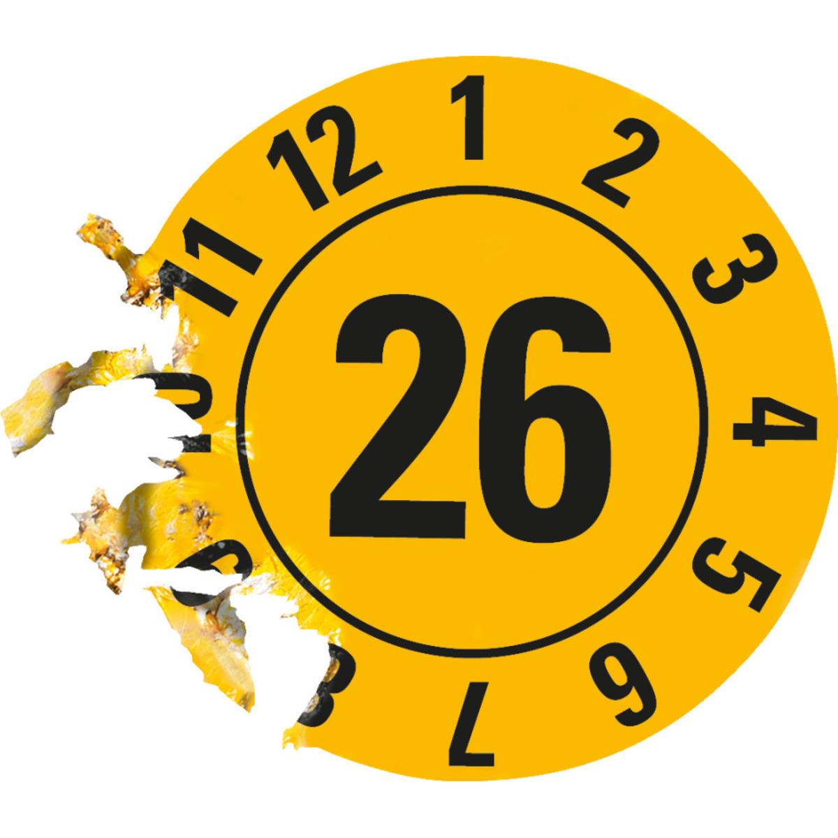 Auswahl: Prüfplakette 26, gelb, Dokumentenfolie, selbstklebend, Ø 10mm, 128/Bogen