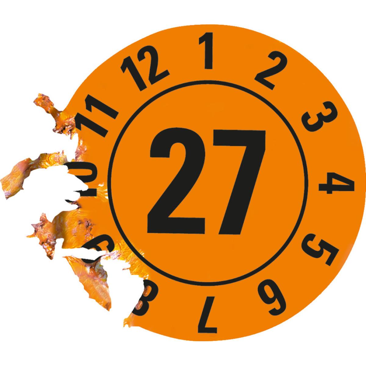 Auswahl: Prüfplakette 27, orange, Dokumentenfolie, selbstklebend, Ø 10mm, 384/Heft