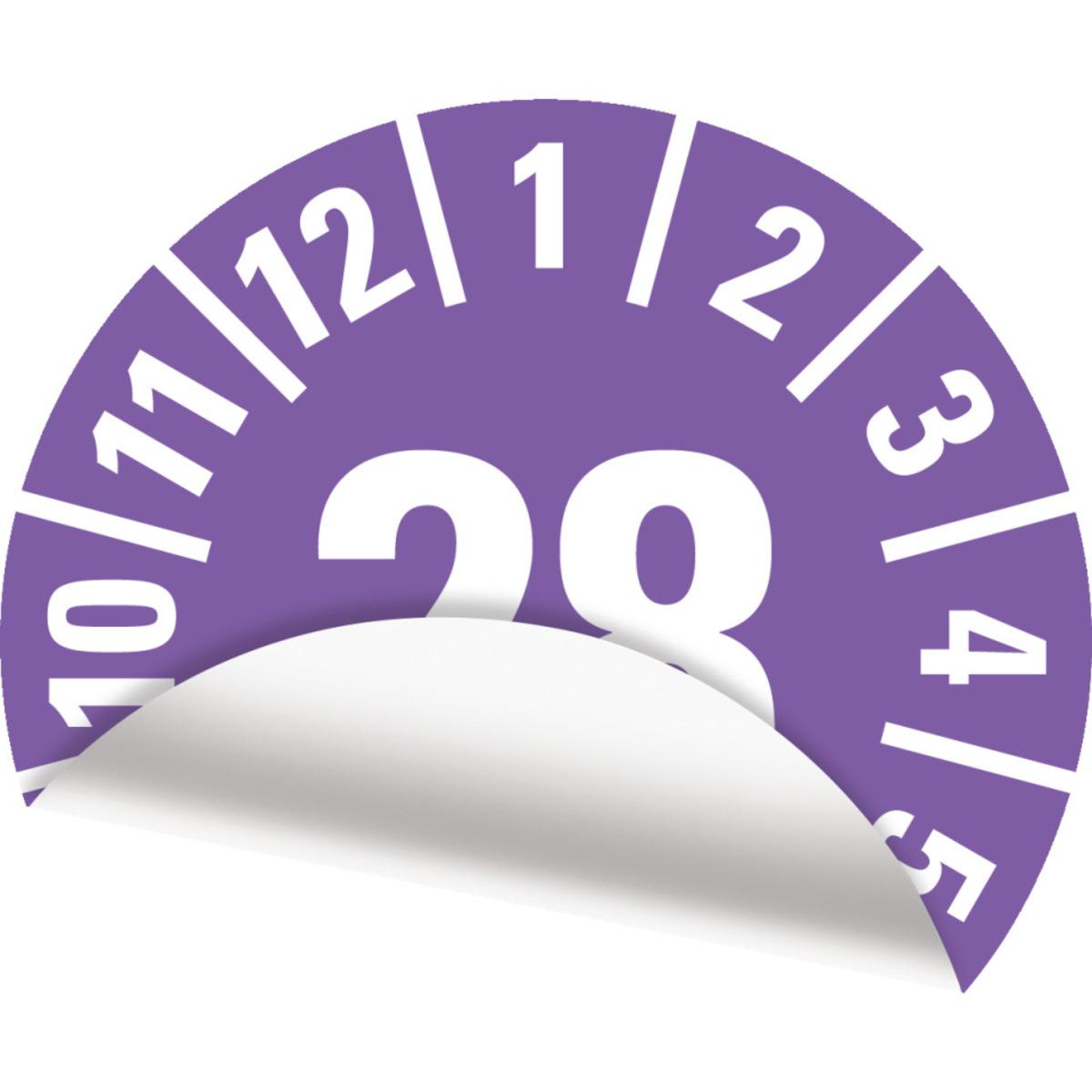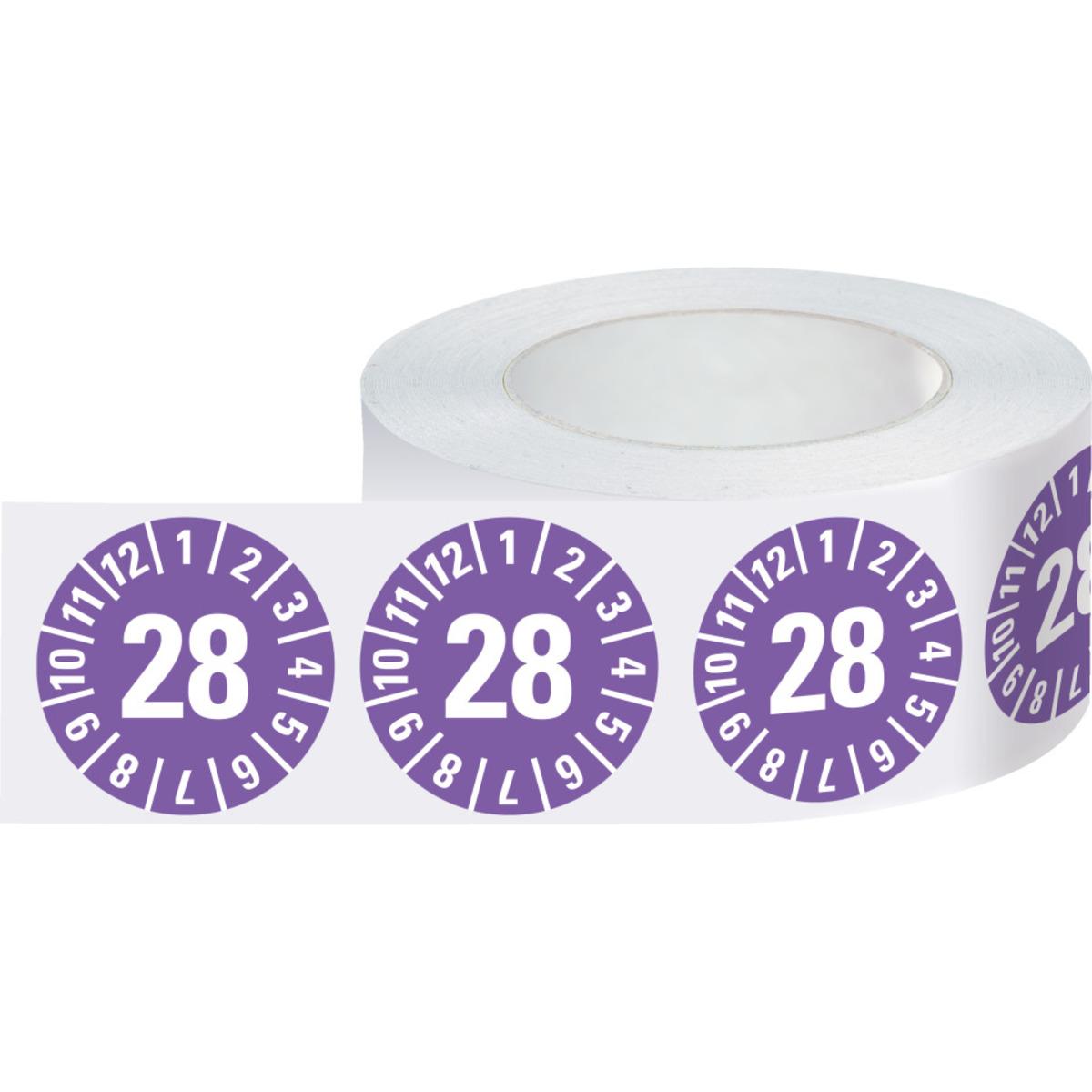 Auswahl: Prüfplakette 28, violett, Folie, ablösbar, Ø 15mm, 1000/Rolle