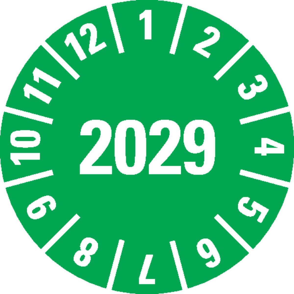 Einjährige Prüfplakette in der jeweiligen Jahresfarbe für die regelmäßige Prüfung von Arbeitsmitteln.
