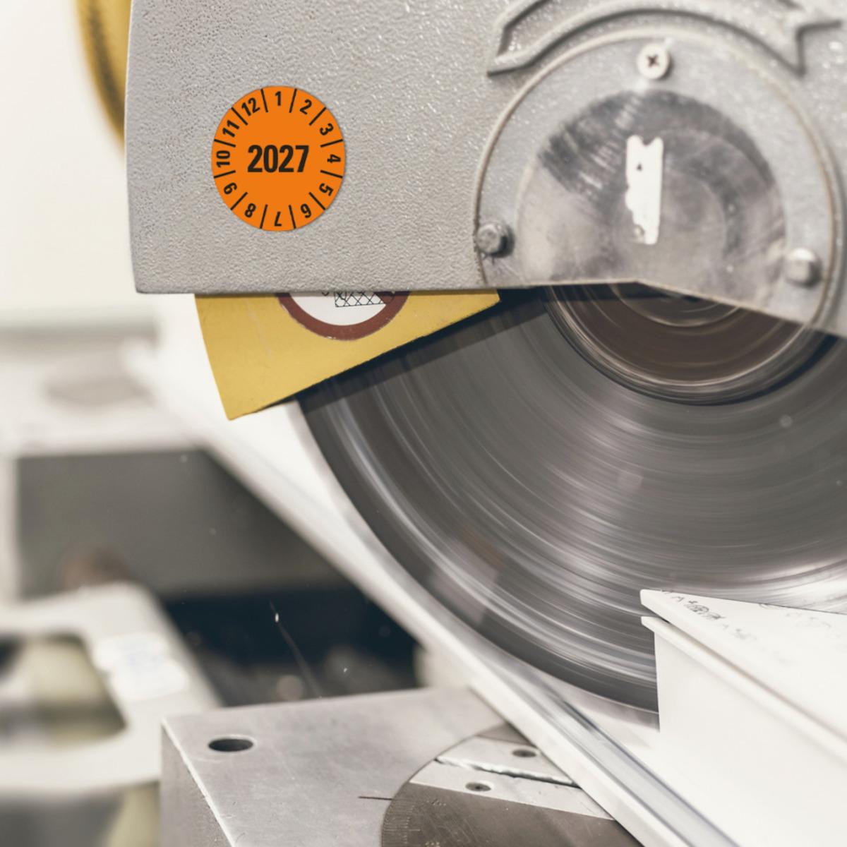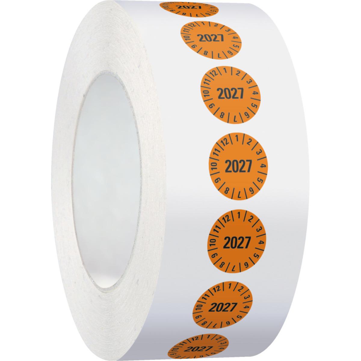 Auswahl: Prüfplakette 2027, orange, Dokumentenfolie, selbstklebend, Ø 15mm, 1000/Rolle