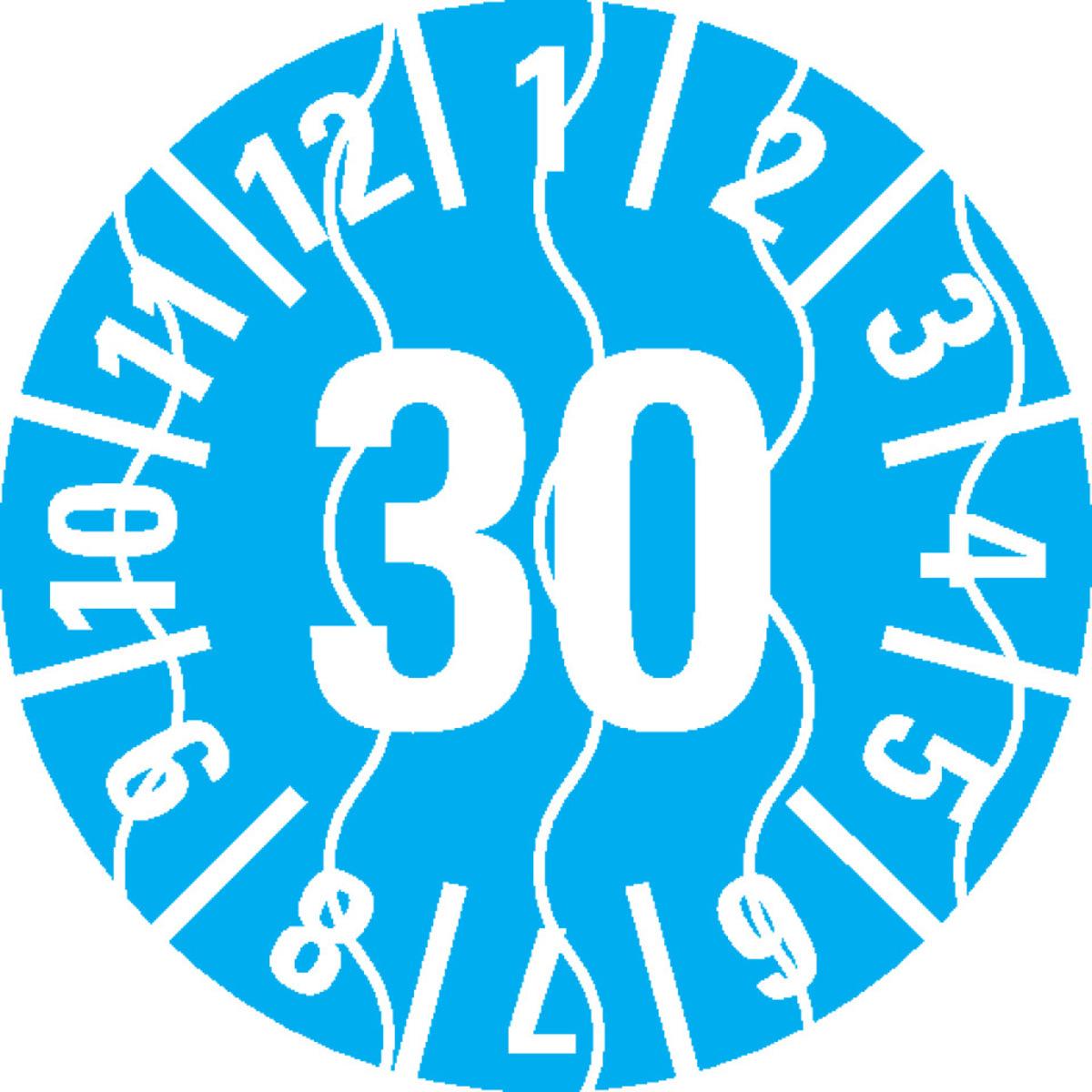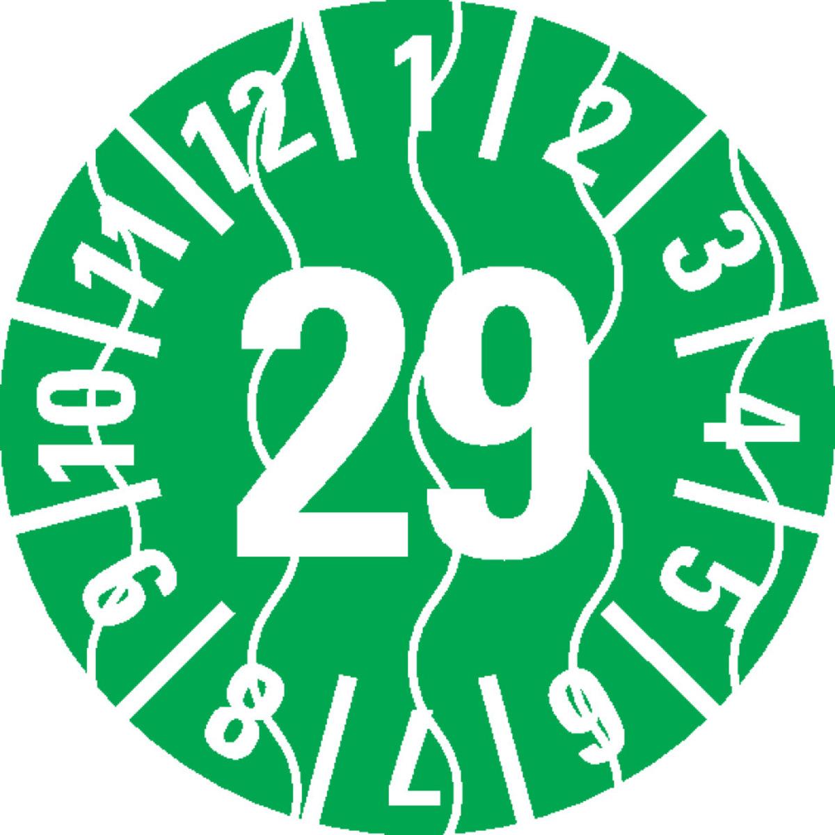 KSIGN Jahresprüfplakette Ø 15 mm Folie mit Sicherheitsstanzung Bogen