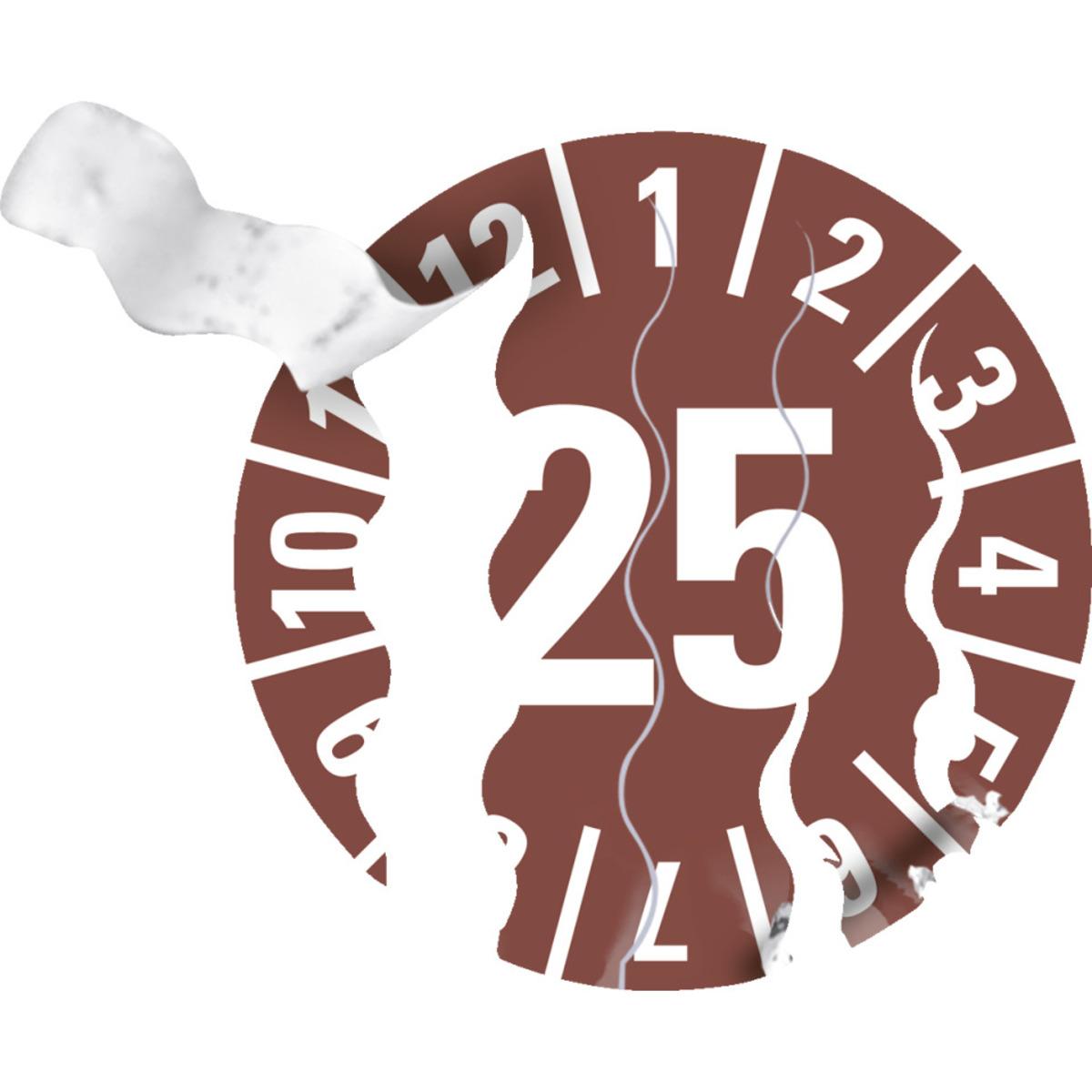 Auswahl: Prüfplakette 25, braun, Sicherheitsfolie, selbstklebend, Ø 15mm, 60/Bogen