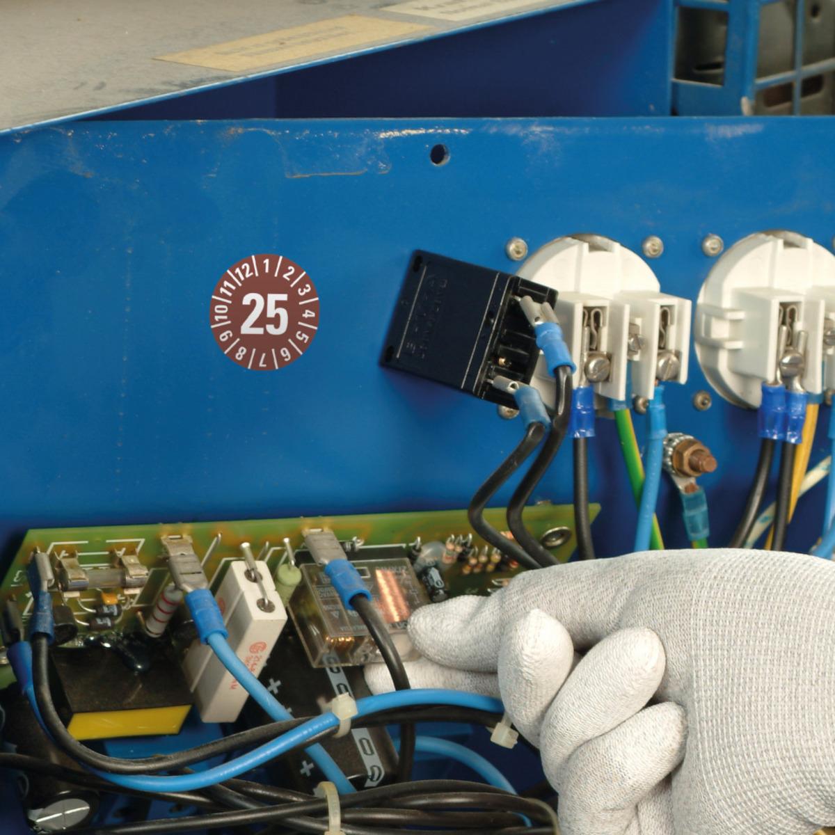 Jahresprüfplakette mit Jahreszahl zur Prüfung von elektrischen Anlagen und Betriebsmitteln