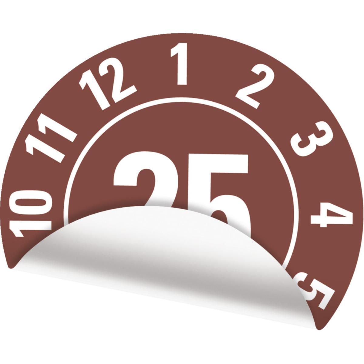 Auswahl: Jahresprüfplakette 25, braun, Folie, ablösbar, Ø 20mm, 500/Rolle