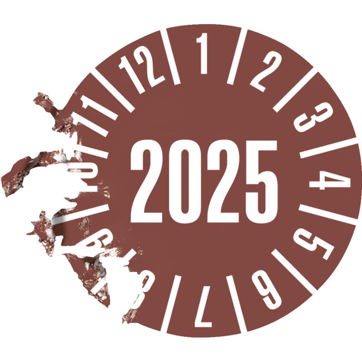 Auswahl: Prüfplakette 2025, braun, Dokumentenfolie, selbstklebend, Ø 20mm, 180/Heft