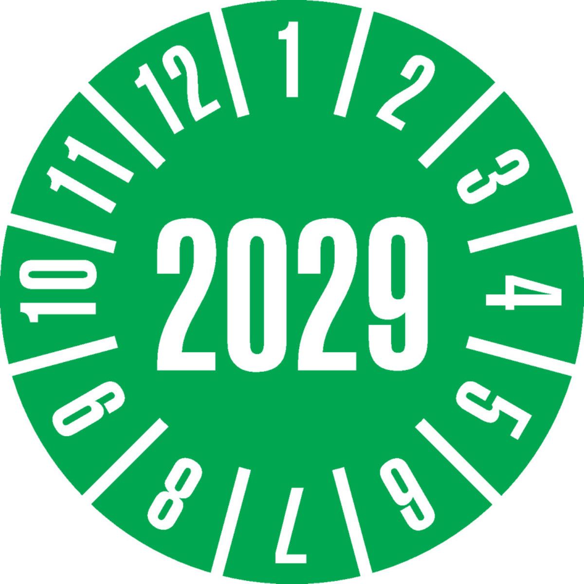 Einjährige Prüfplakette in der jeweiligen Jahresfarbe für die regelmäßige Prüfung von Arbeitsmitteln.