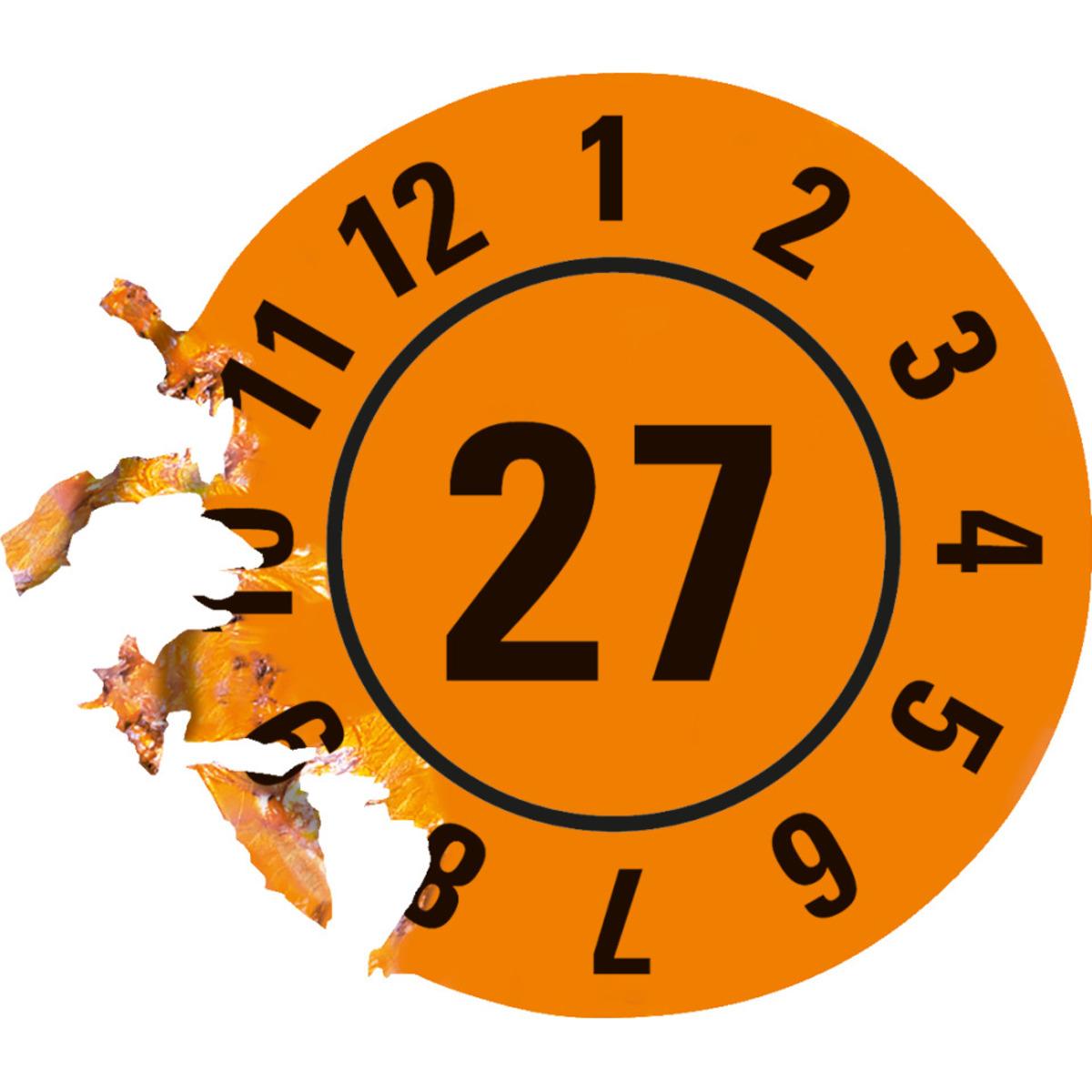 Auswahl: Prüfplakette 27, orange, Dokumentenfolie, selbstklebend, Ø 25mm, 21/Bogen