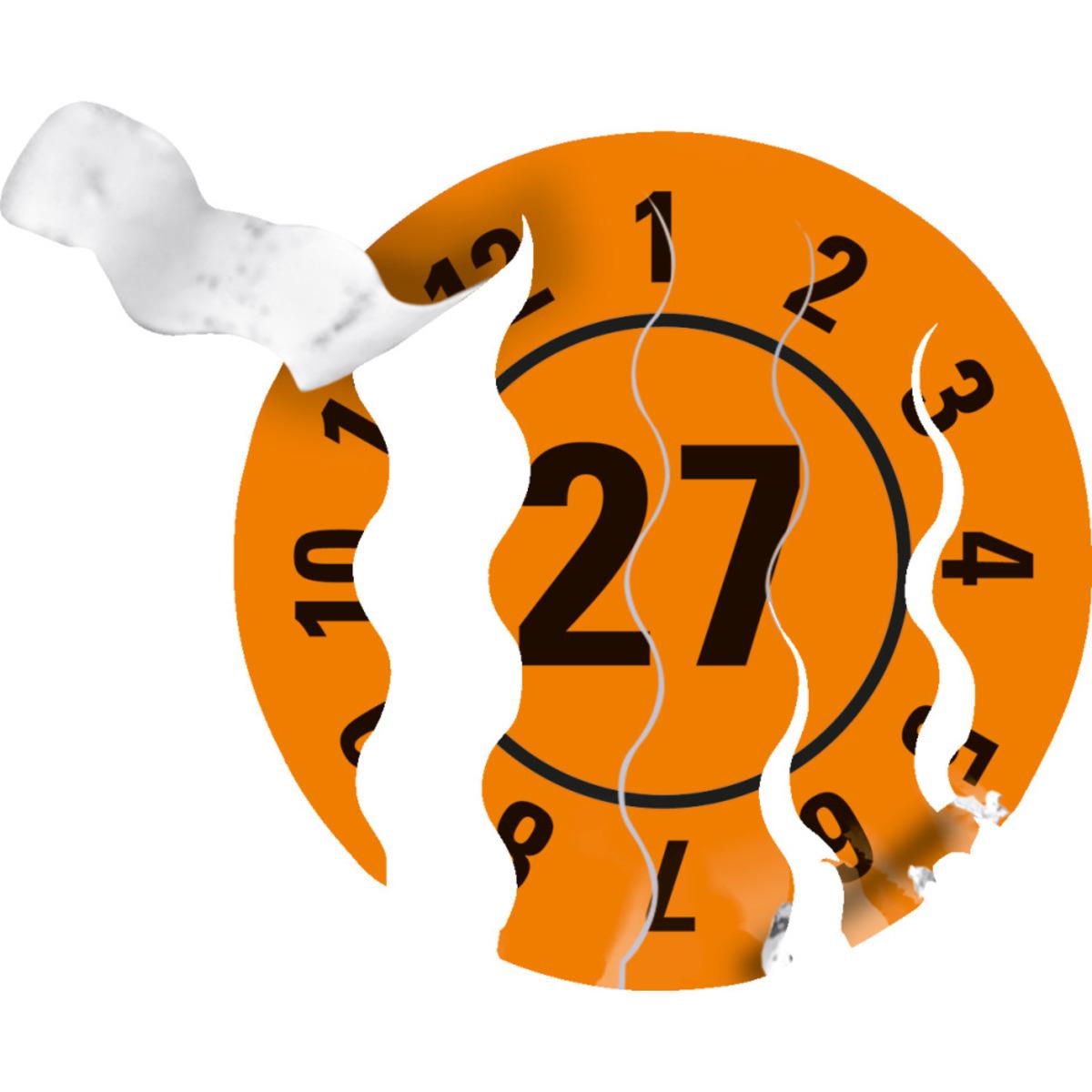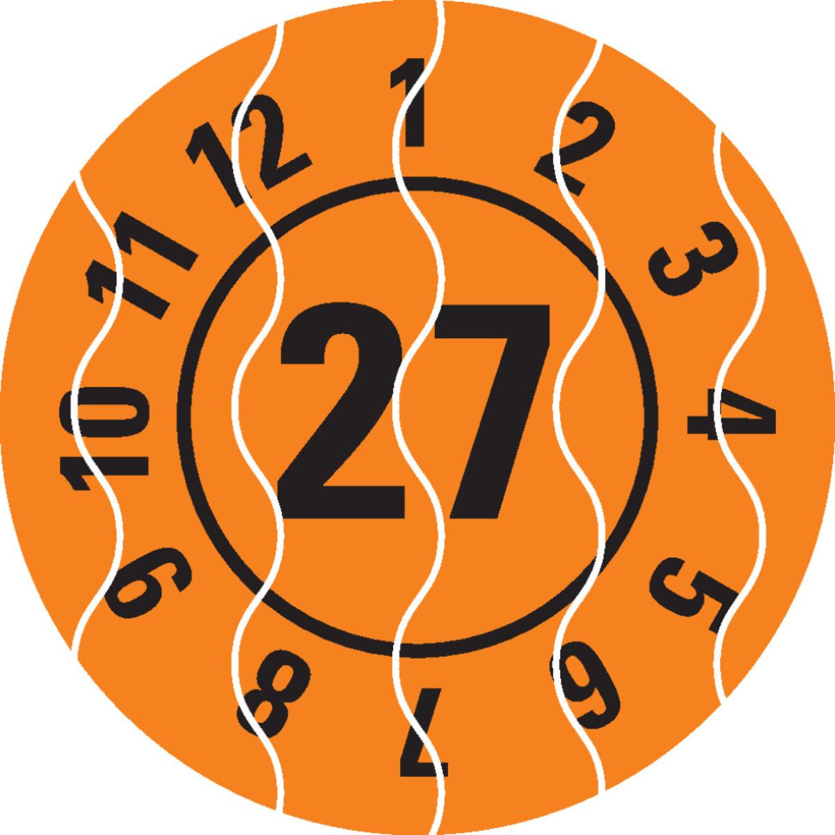 Auswahl: Prüfplakette 27, orange, Sicherheitsfolie, selbstklebend, Ø 25mm, 21/Bogen