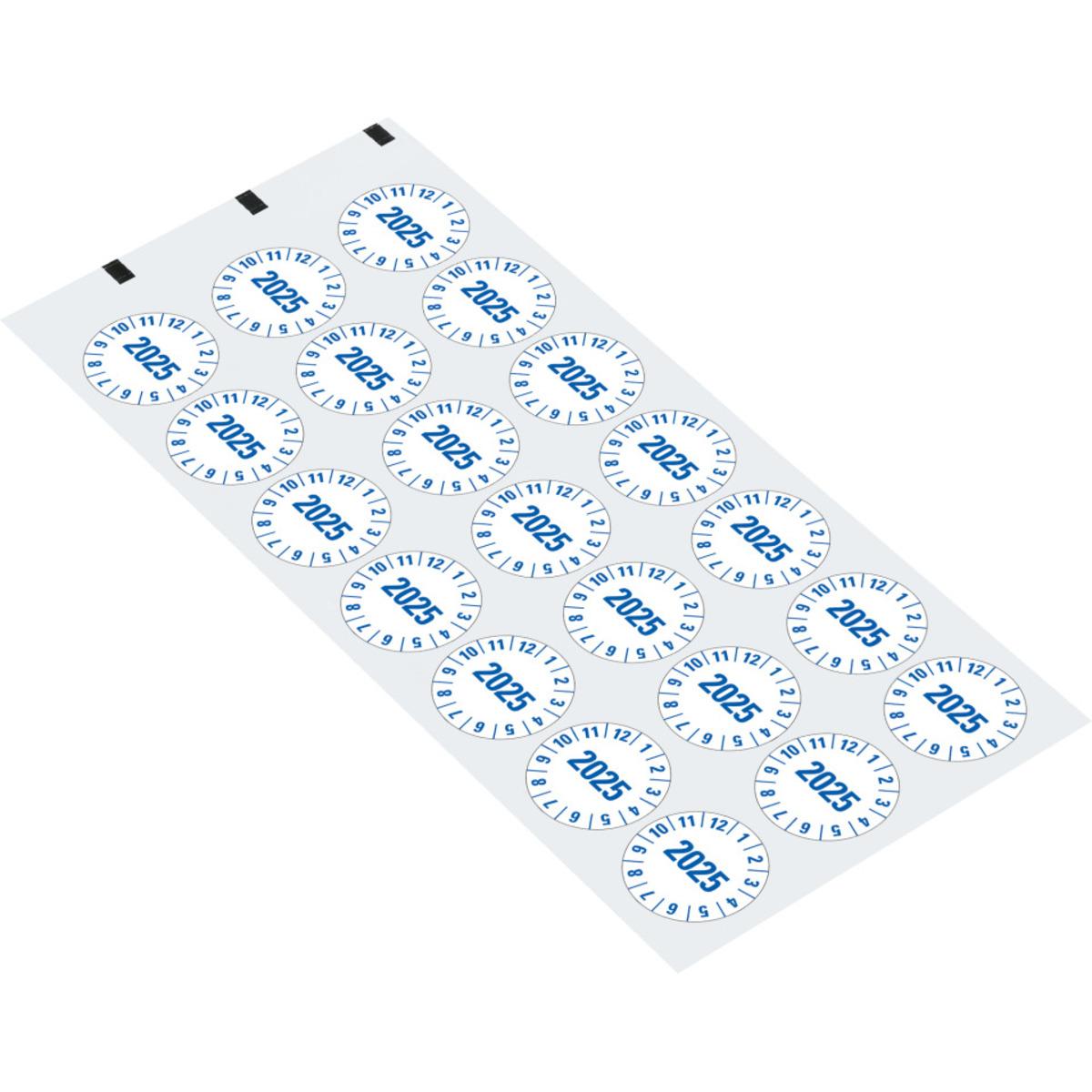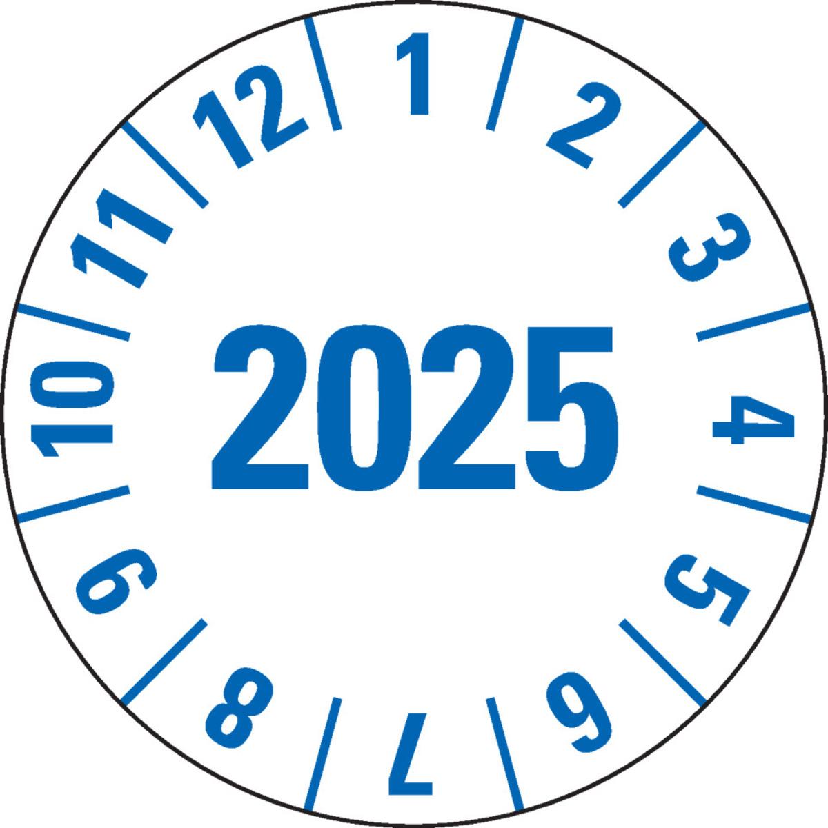 Auswahl: Prüfplakette 2025, weiß, Folie, m.Spezialkleber, Oberflächenschutz, Ø 25mm, 21/Bogen