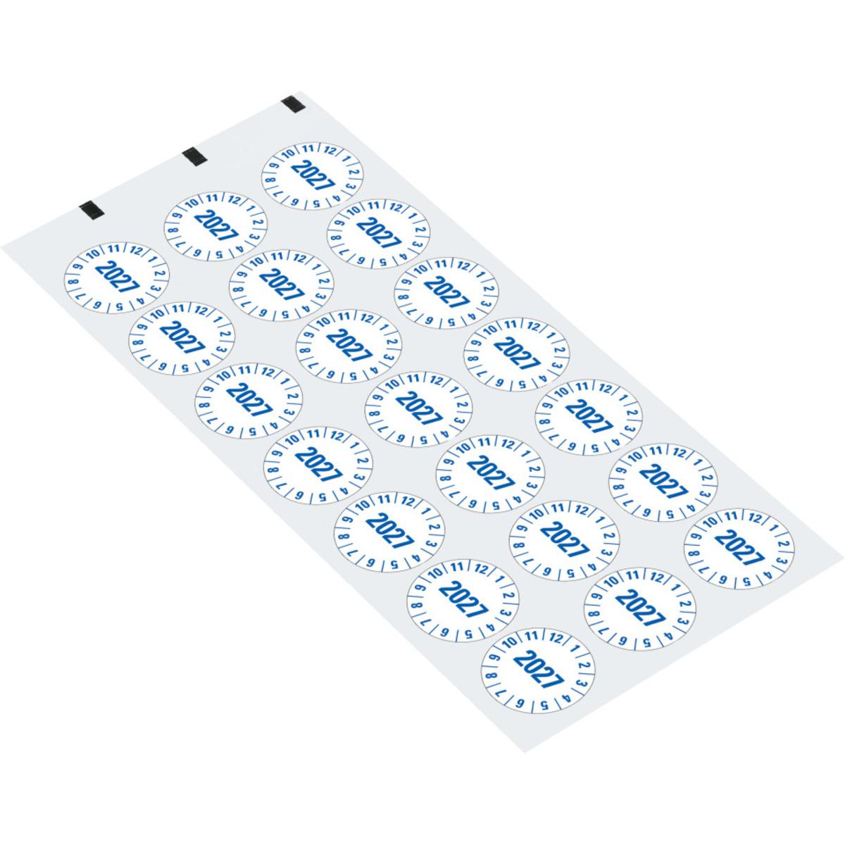 Auswahl: Prüfplakette 2027, weiß, Folie, m.Spezialkleber, Oberflächenschutz, Ø 25mm, 21/Bogen
