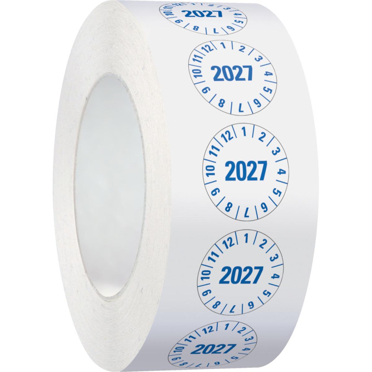 Auswahl: Prüfplakette 2027, weiß, Folie, m.Spezialkl., Oberflächenschutz, Ø25mm, 500/Rolle