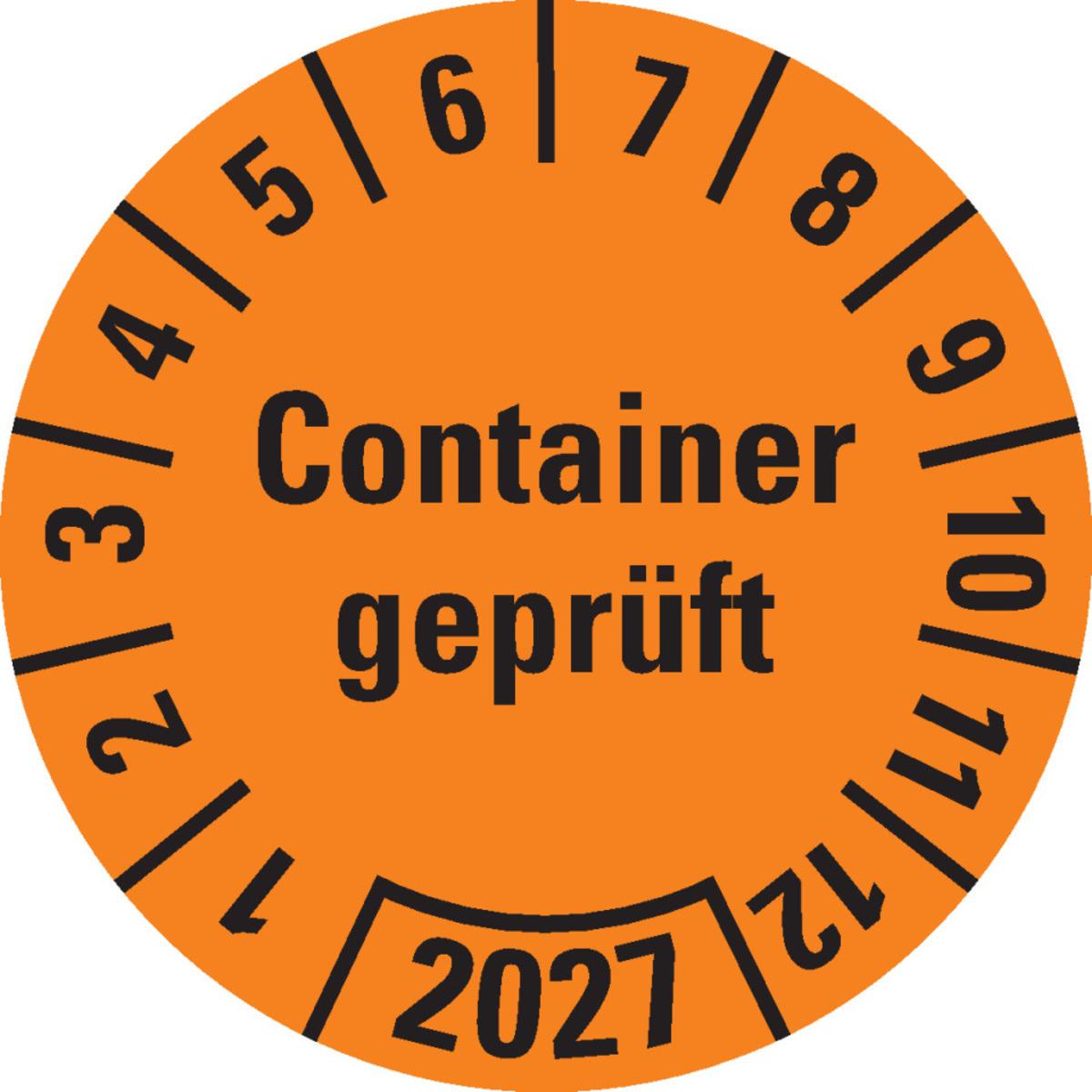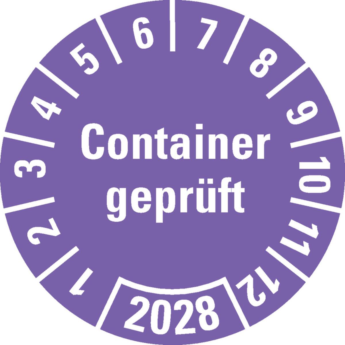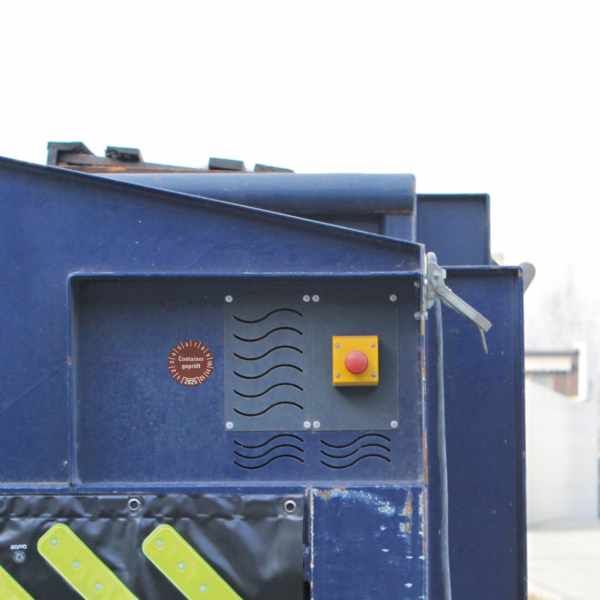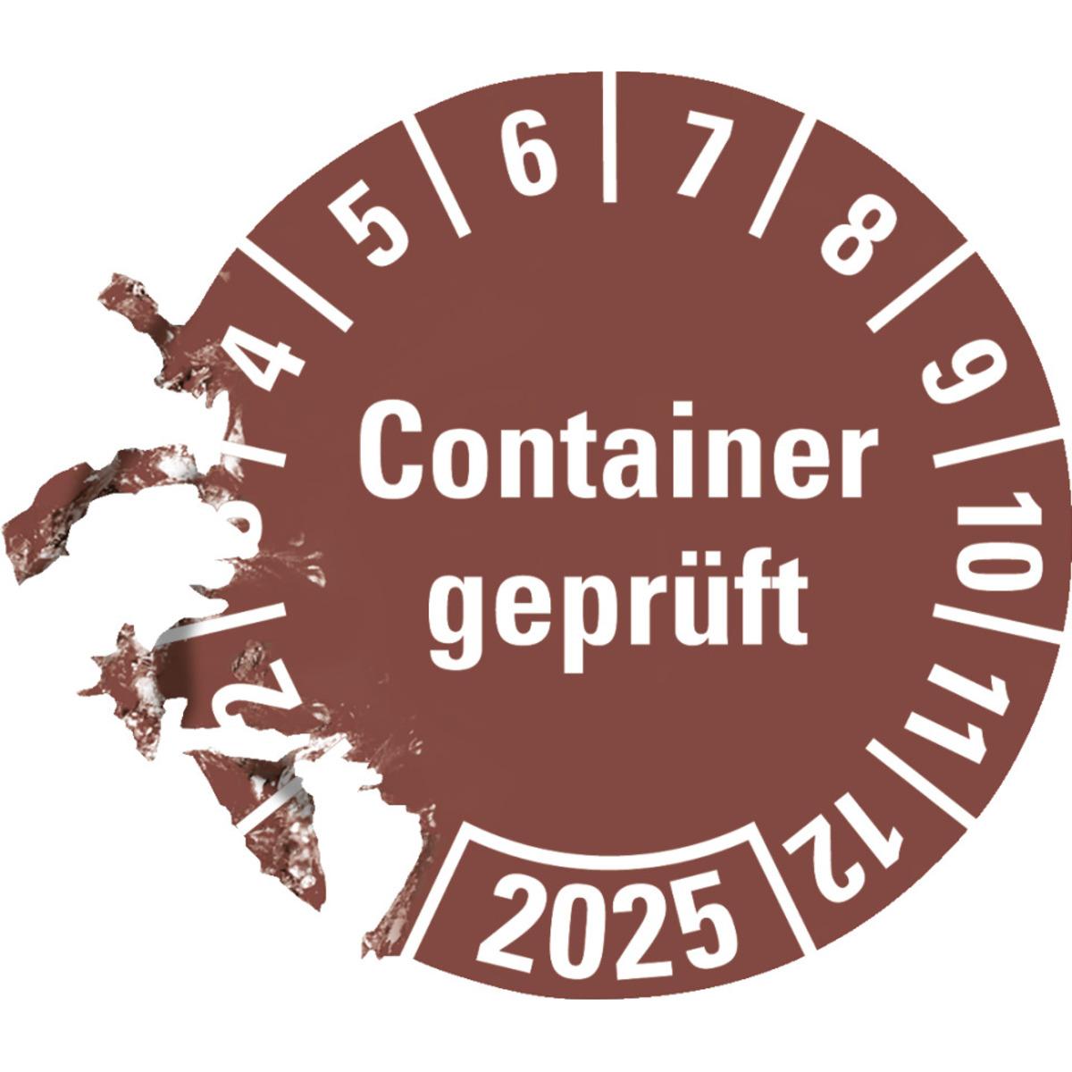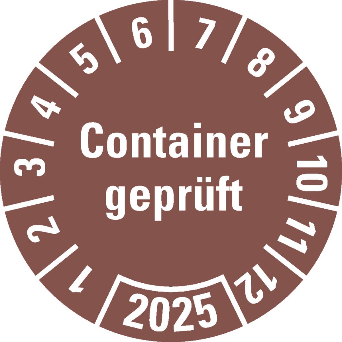 Auswahl: Prüfplakette Container geprüft 2025, braun, Hochleistungsfolie, Ø 30mm, 18/Bogen