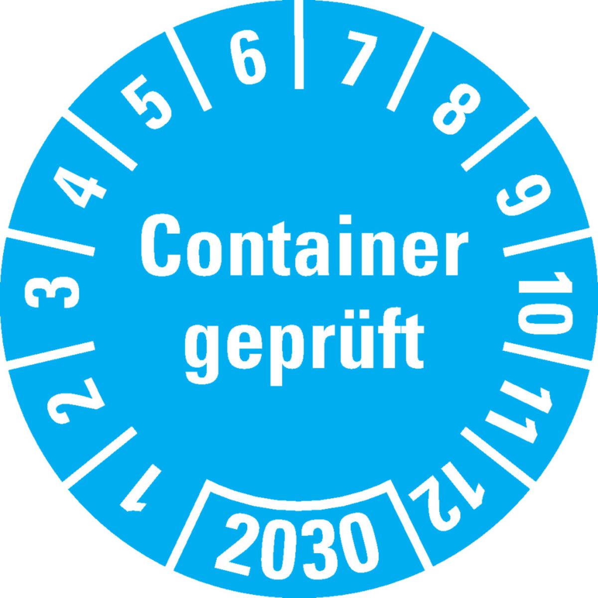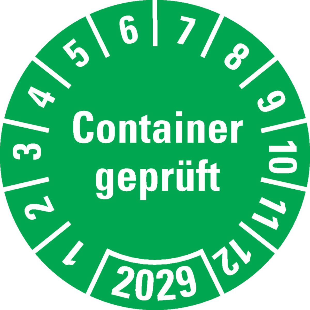 Jahresprüfplakette "Container geprüft" zur Dokumentation von erfolgreich durchgeführten Container-Prüfungen