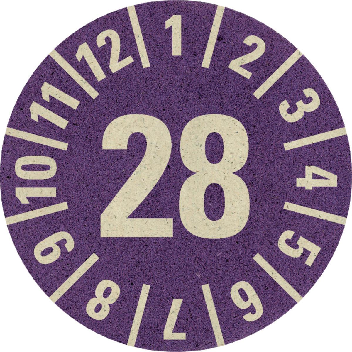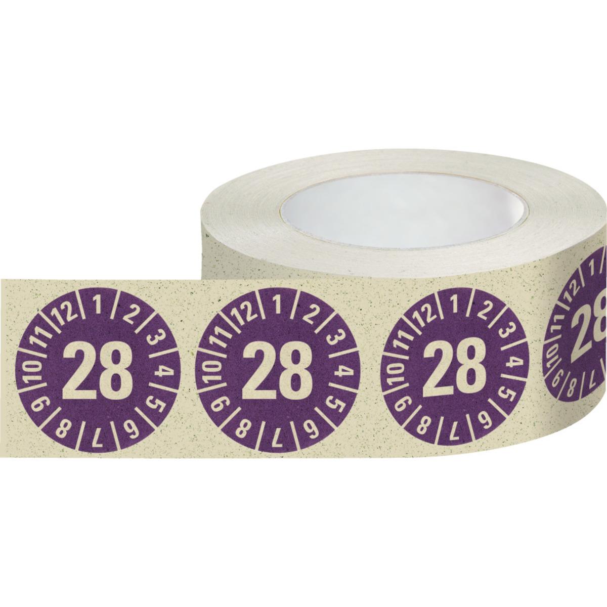 Auswahl: Prüfplakette 28, violett, Primärfaser-Graspapier, Ø 30mm, 500/Rolle