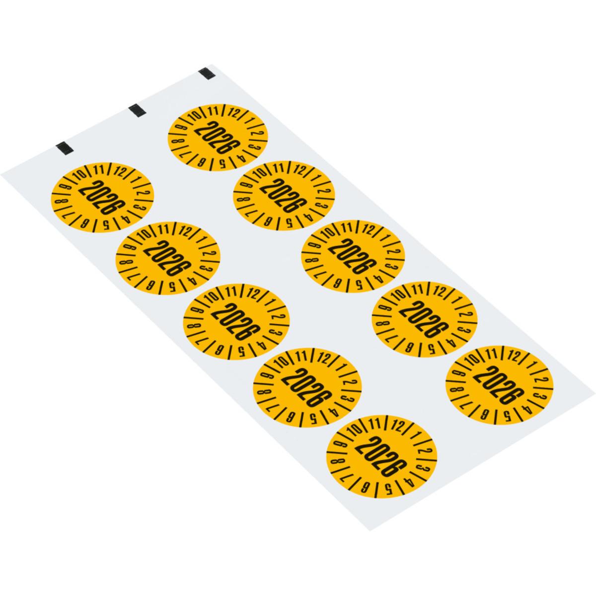 Auswahl: Prüfplakette 2026, gelb, Folie, ablösbar, Ø 35mm, 10/Bogen